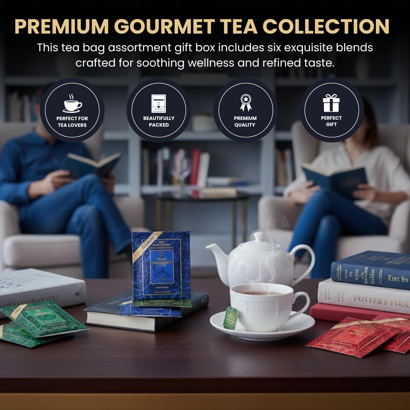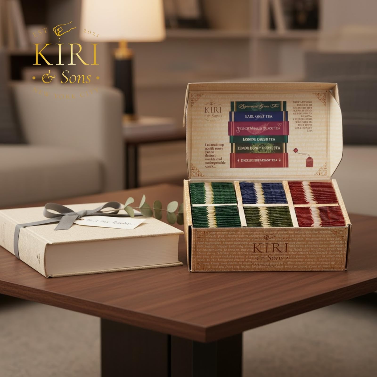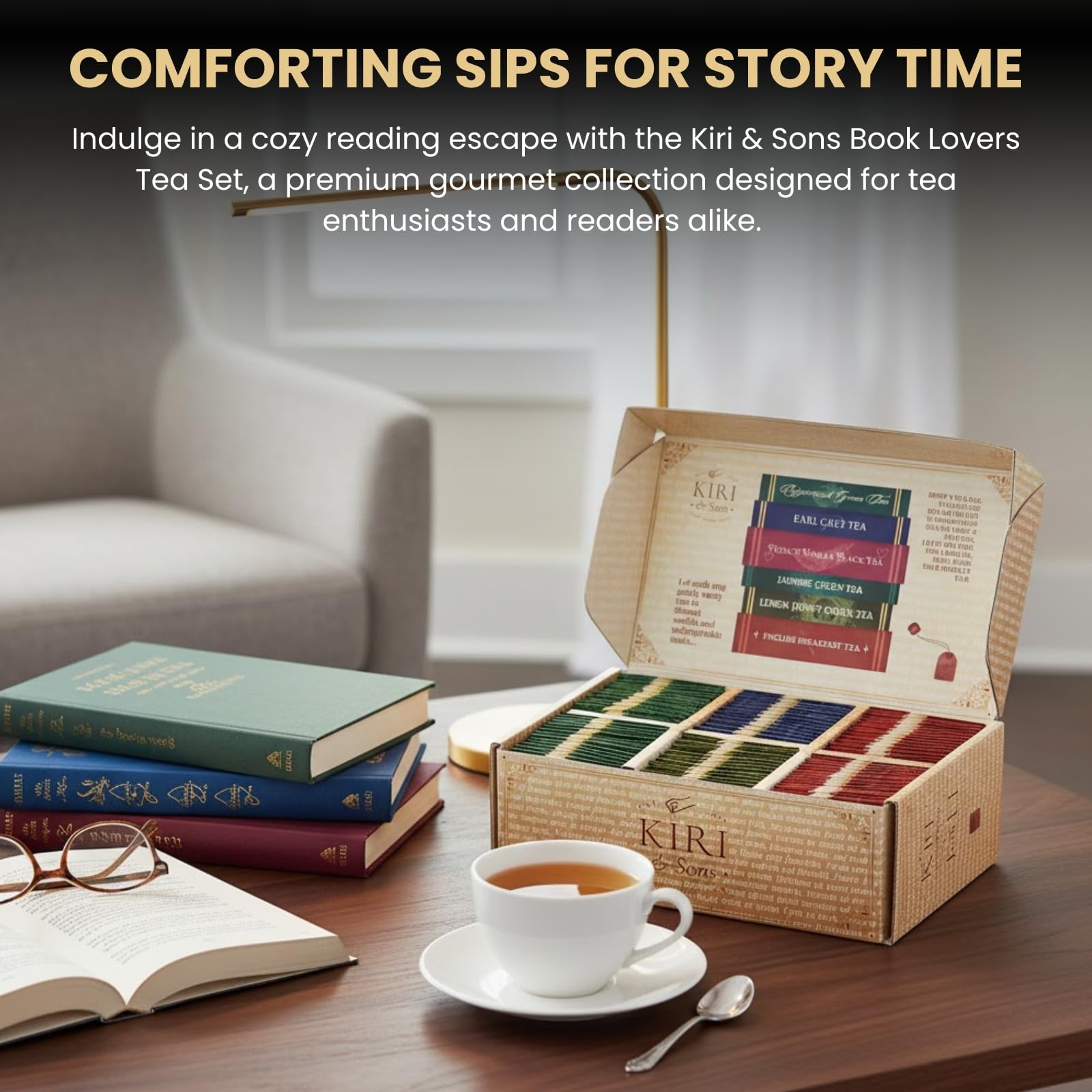 Indulge in a cozy reading escape with the Kiri & Sons Book Lovers Tea Set, a premium gourmet collection designed for tea enthusiasts and readers alike. This literary-themed tea bag assortment gift box includes 90 individually wrapped bags featuring six aromatic blends such as Earl Grey, Peppermint, Jasmine, Lemon Honey, and English Breakfast. Each cup offers a soothing and flavorful experience, perfect for morning energy or an afternoon beverage. These teas provide a calming and aromatic drink ideal for home, office, or reading time. A thoughtful gift for bookworms, writers, and tea lovers who appreciate warmth and inspiration in every sip.