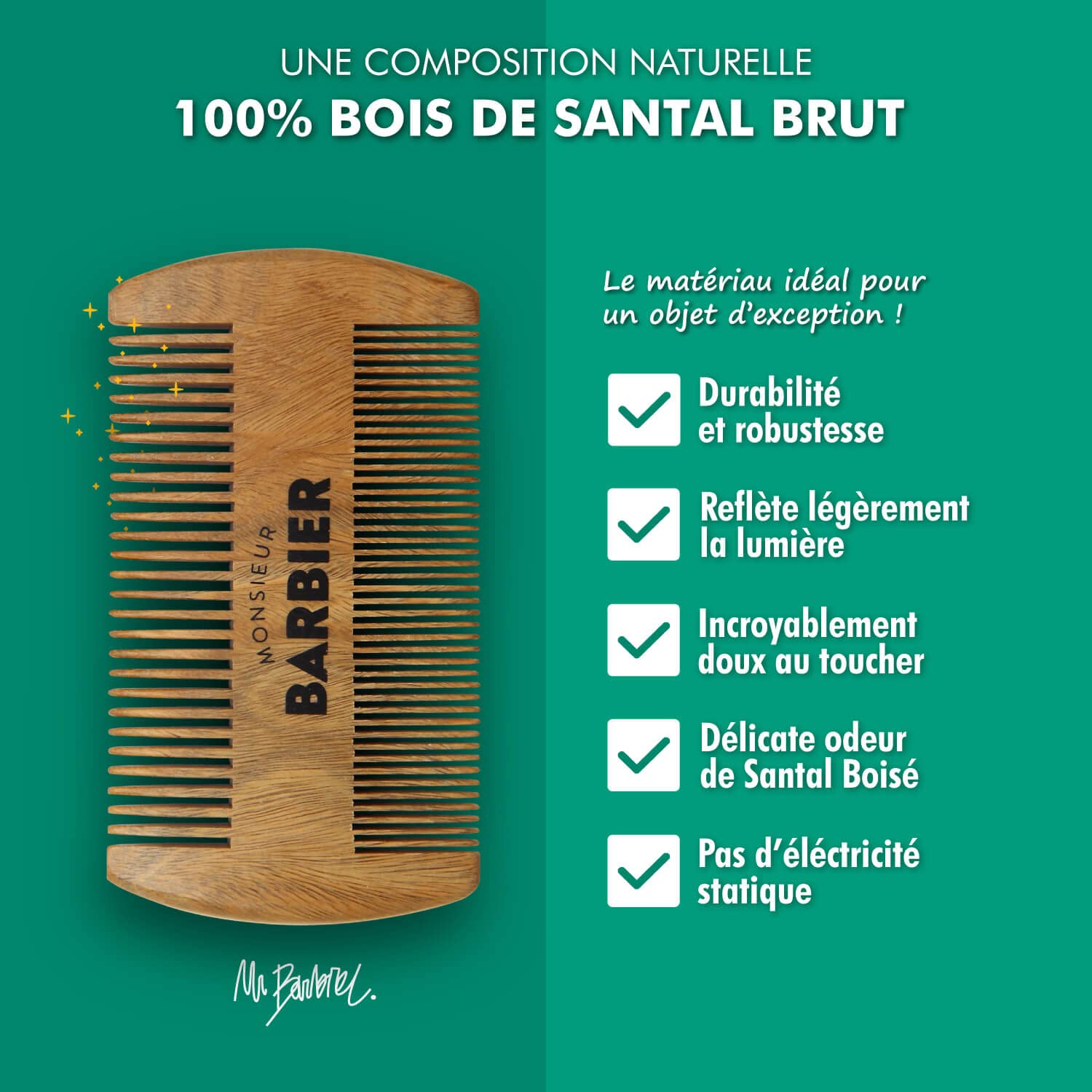 - 100% natural sandalwood: known for its natural fragrance, its soothing and disinfecting properties, sandalwood is ideal for the most sensory styling.
