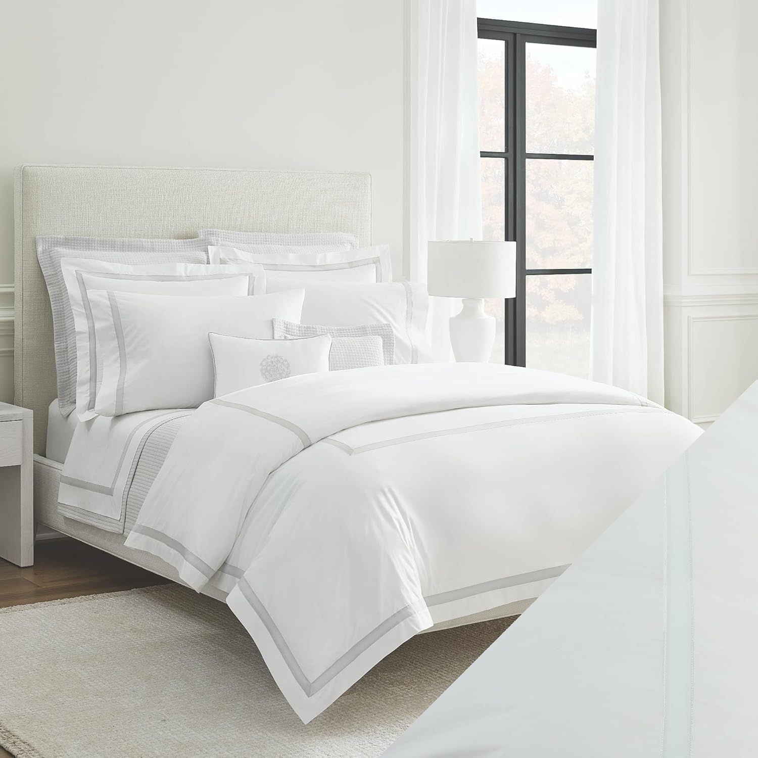 - ELEVATE YOUR SANCTUARY WITH LUXURY: Immerse yourself in the understated sophistication of the Sferra Estate Collection. Crafted with precision in Italy, this bedding ensemble is a symphony of crisp white, long-staple cotton percale, and lustrous sateen appliqué details. It's the perfect addition to your queen or king size bed, offering a backdrop of sheer elegance that's perfect for elevating your space.