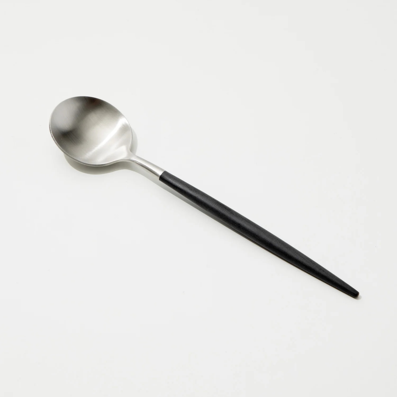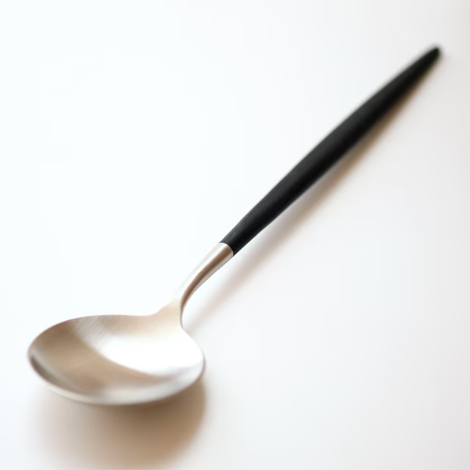 The Cutipol Goa GO08 dessert spoon is a masterclass in modern dining. This piece achieves a perfect symbiosis between its high-performance matte silver stainless steel head and a slender, ergonomic midnight black handle. The silhouette is famously lightweight and perfectly balanced, bringing a refined "Haute Couture" artistry to every contemporary table.