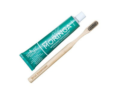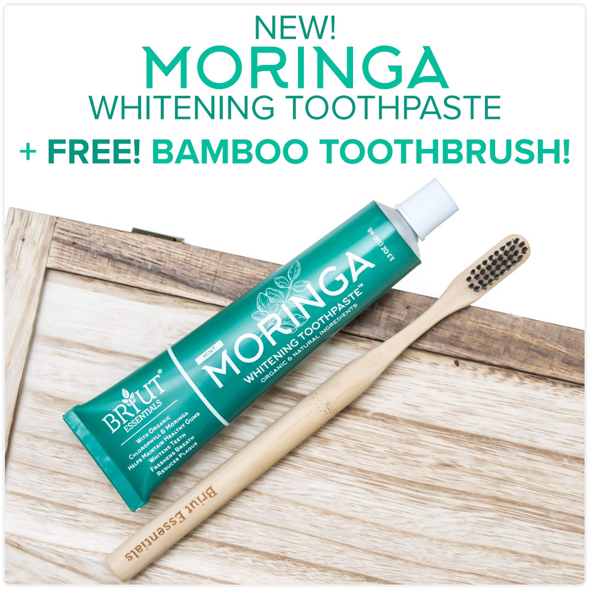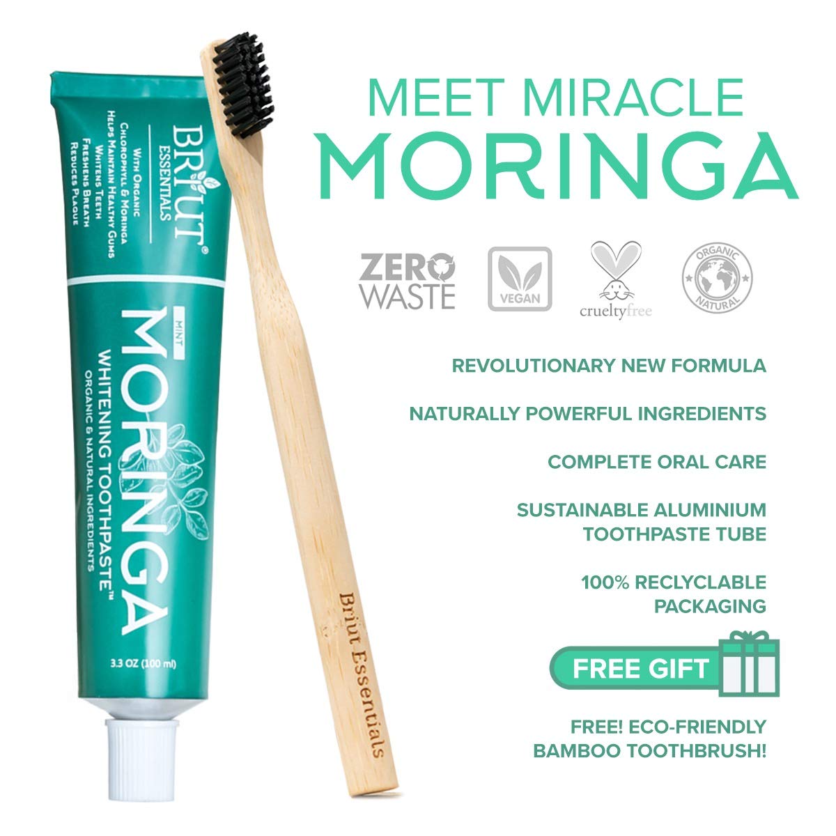Briut Essentials MORINGA Whitening Toothpaste | 100% Organic & Natural Ingredients | Vegan | Fluoride-Free | Clinically Tested | Enamel-Safe | Includes FREE BAMBOO TOOTHBRUSH |