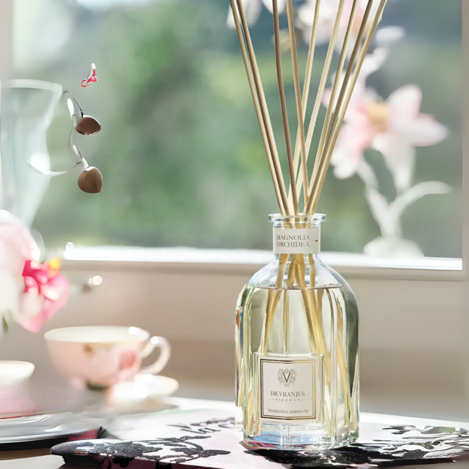 Dr. Vranjes Magnolia Orchidea "Magnolia Orchid" Diffuser - 250 ml has a fragrance combination of Magnolia, Orchid, and Mimosa. This elegant aroma will bring an intoxicating treat to your home.