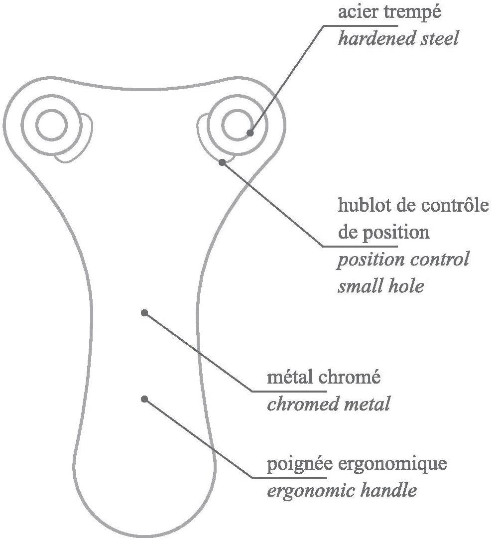 - Its two small holes allow you to verify the tool’s right position upon the foil during the cutting process.