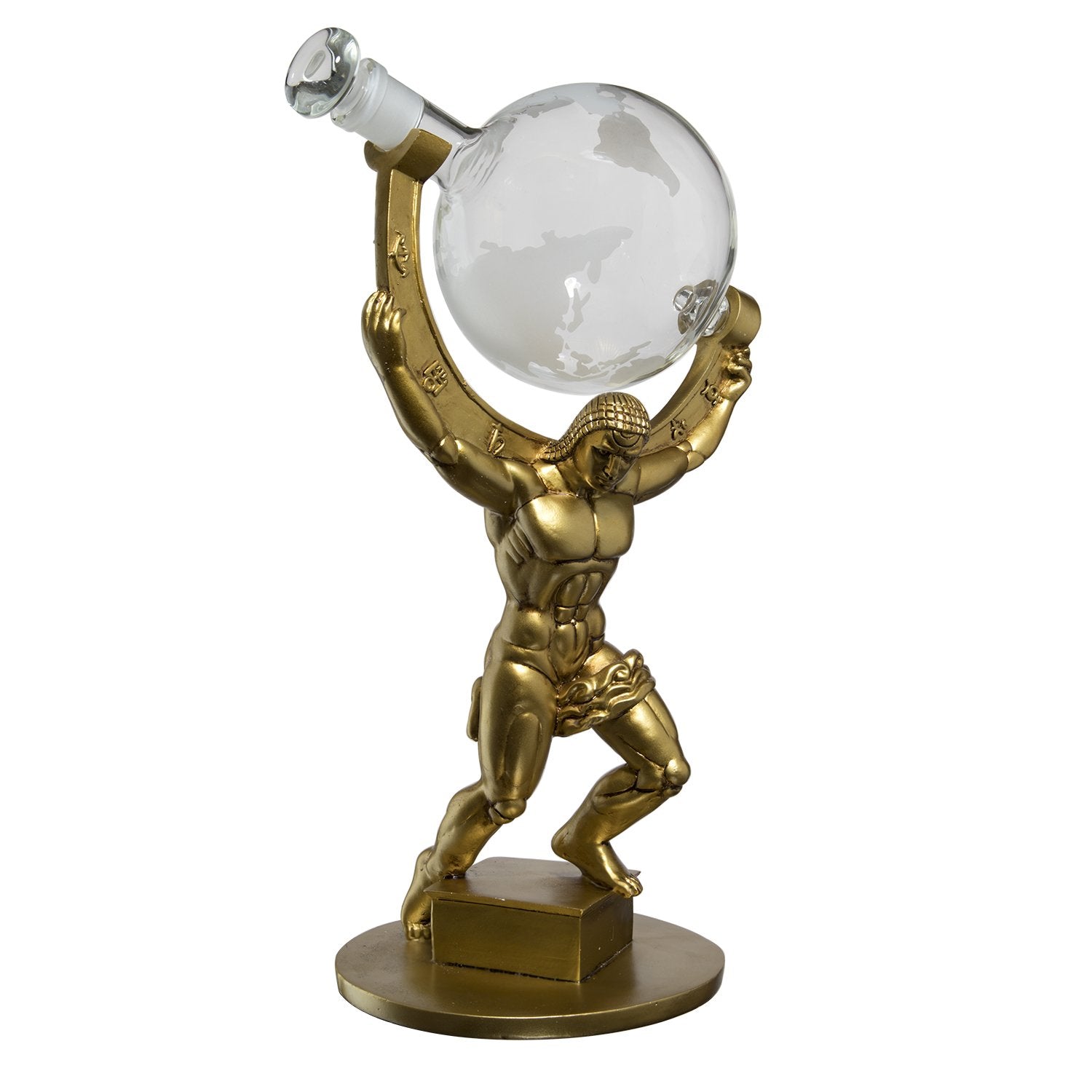 - MAGNIFICENT PIECE OF ART: This Atlas bronze statue holding a globe is reminiscent and appropriated as a symbol of the Objectivist movement. With Atlas carrying the celestial vault on his shoulders. With the planets insignia inside the bar.