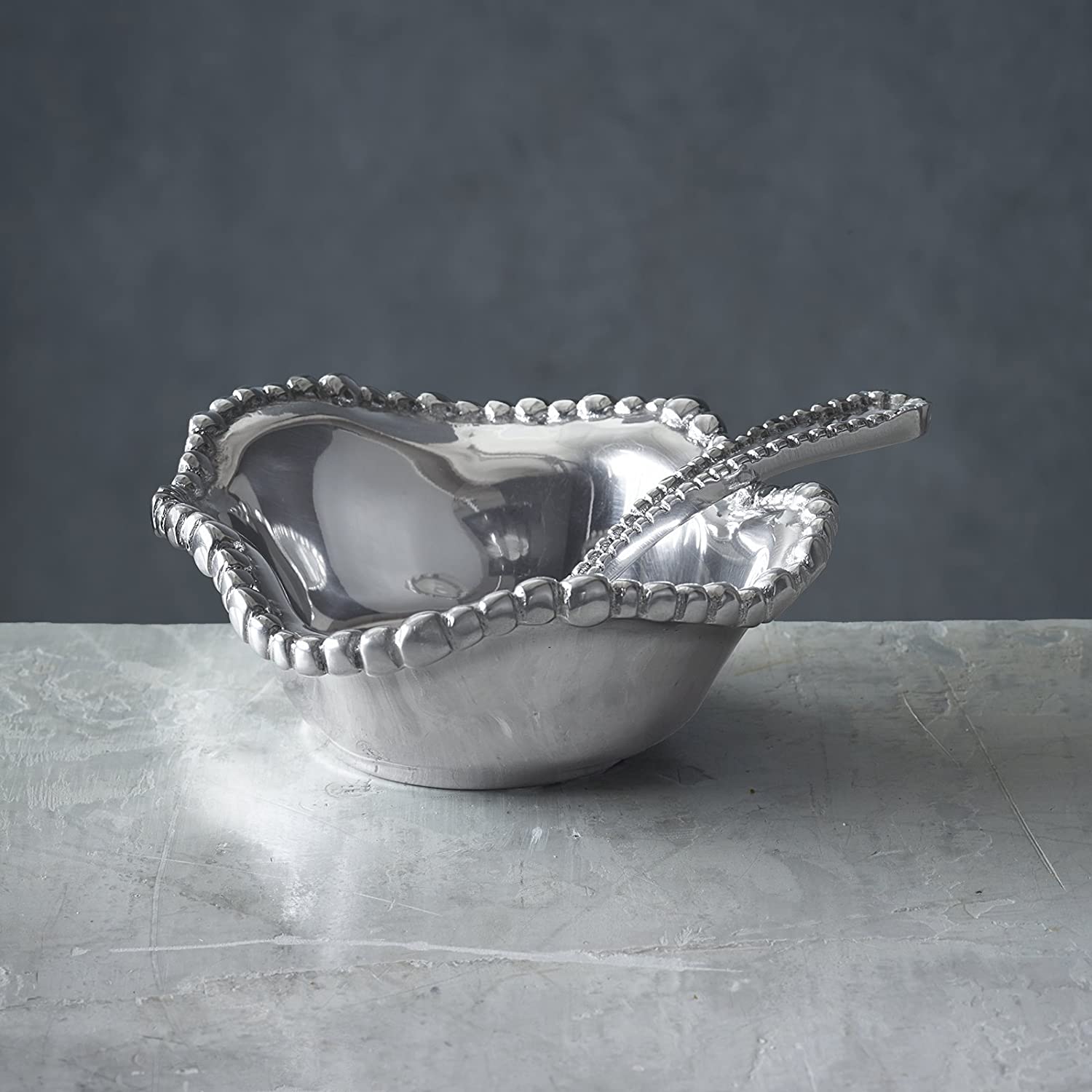 The Beatriz Ball GIFTABLES Organic Pearl decorative silver bowl with serving spoon makes a unique wedding gift, and a beautiful accent piece.