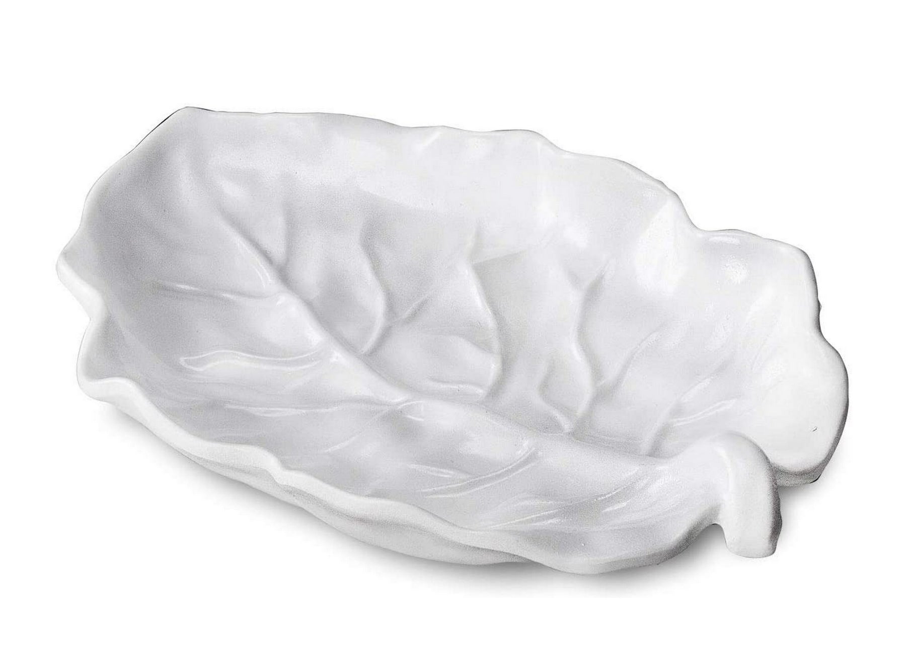 Brilliance in luxury melamine! A tribute to everyone's favorite leafy greens, Beatriz Ball's medium VIDA Lettuce Platter is absolutely fabulous for serving your favorite organic foods, and makes a stylish and pactical tray for fresh fruit on the kitchen island. Generously sized, the medium white Lettuce platter boasts rich naturalistic details, and ample serving potential. Stunning when displayed alone, it can be paired with any Lettuce items for a great serving set. Lovely on the patio table for your next outdoor gathering, or on your dining table when friends come to call. Has the substance, weight, and appearance of a ceramic item, but is made of luxury melamine for everyday enjoyment. Dishwasher safe (top rack), heavy-weight, break resistant and durable, food safe, BPA and PABA free.