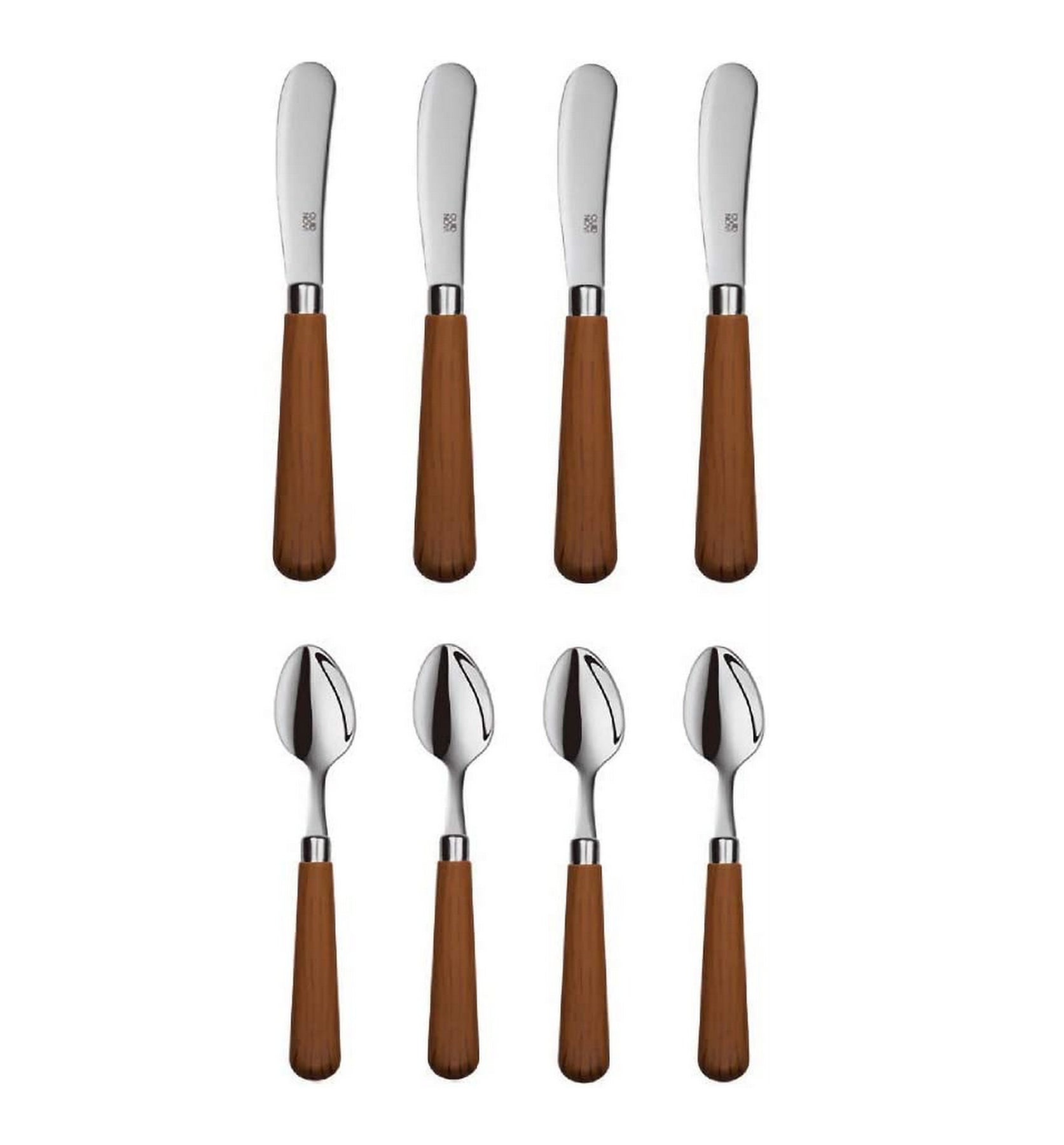 • 8 pc set includes: 4 Butter Spreaders and 4 Mocha Spoons