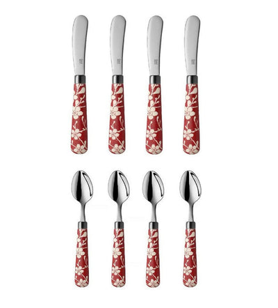 Quid Novi Flatware Fuji-Yama Collection - 8-Piece Stainless Steel Serving Set - Red