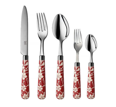 Quid Novi Flatware Fuji-Yama Collection - 10-Piece Stainless Steel Silverware Set Service for 2 - Red
