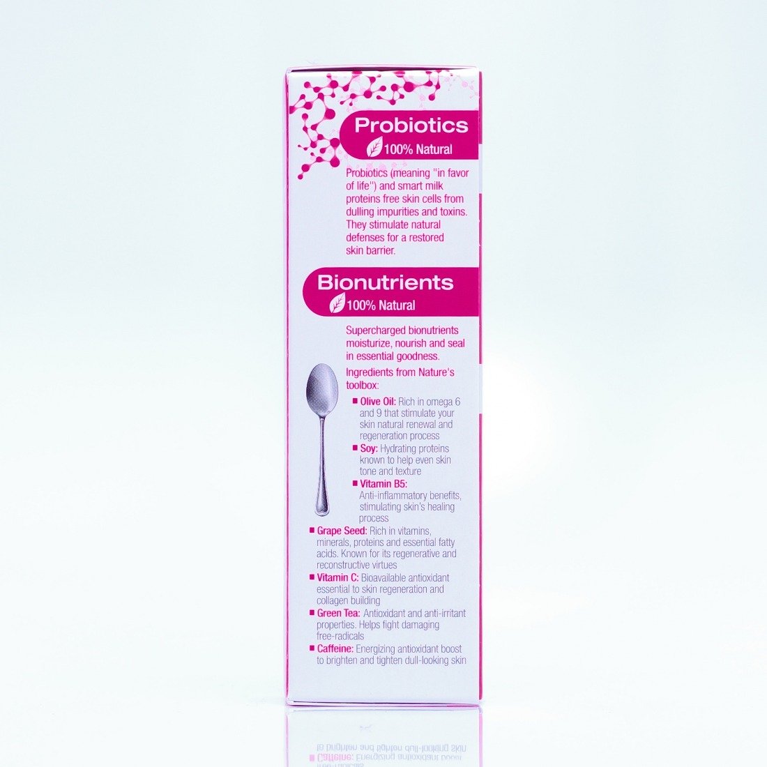• Caffeine: Energizing antioxidant boost to brighten and tighten dull-looking skin