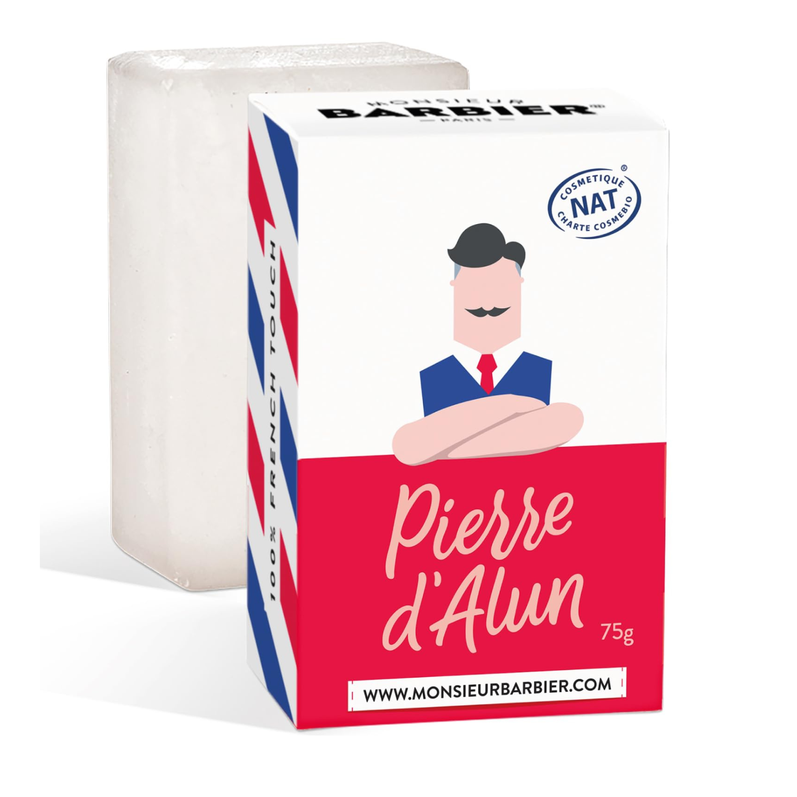 Monsieur BARBIER's natural alum stone is cut directly from the block, with no reconstitution! For maximum longevity and ultimate comfort. An alum stone is a block of natural mineral salt extracted from quarries all over the world. Used for centuries for its purifying, astringent, soothing and healing properties, it has become an essential accessory for Master Barbers. Before shaving, it smoothes the skin and straightens the hair. After shaving, it repairs the skin while preventing irritation and infection.