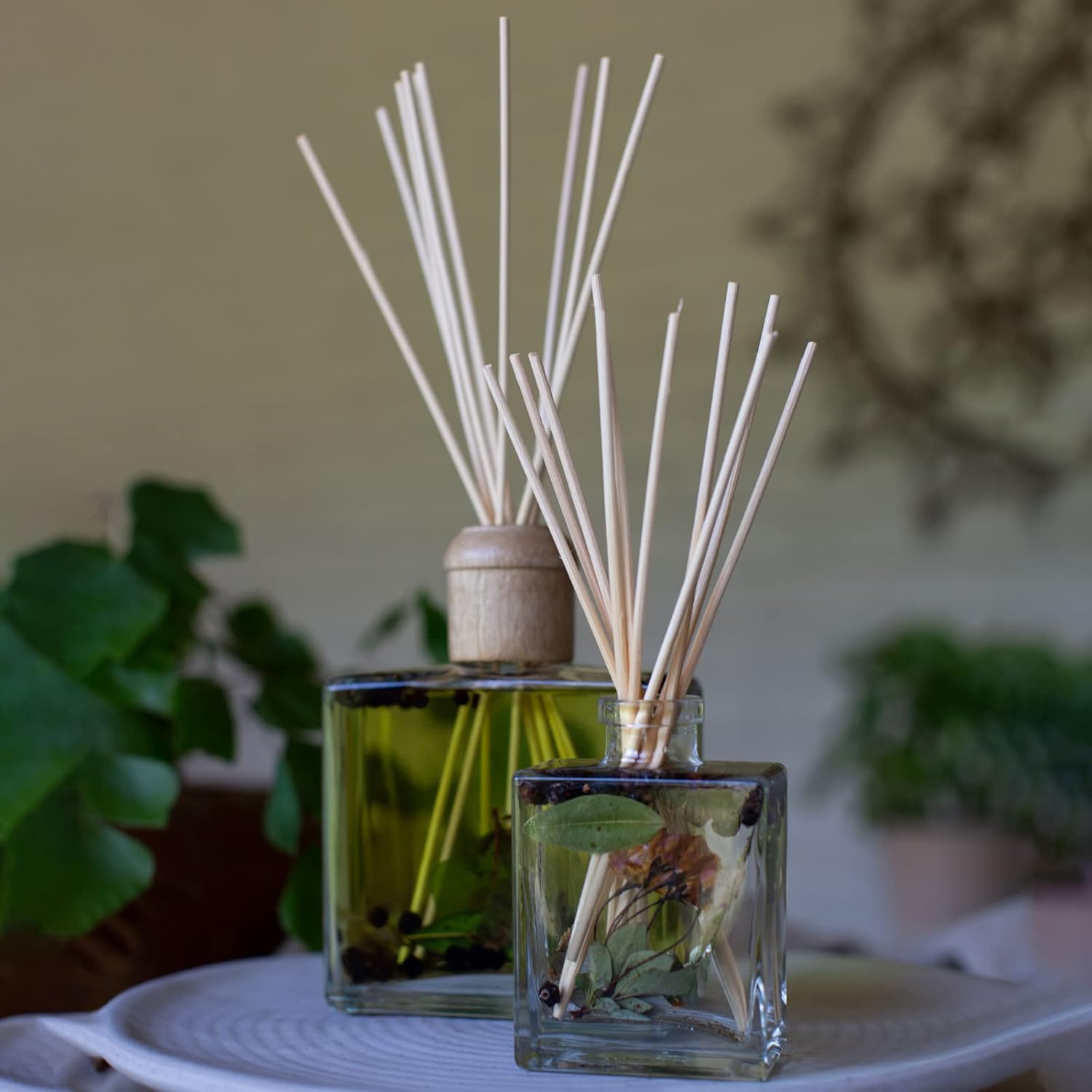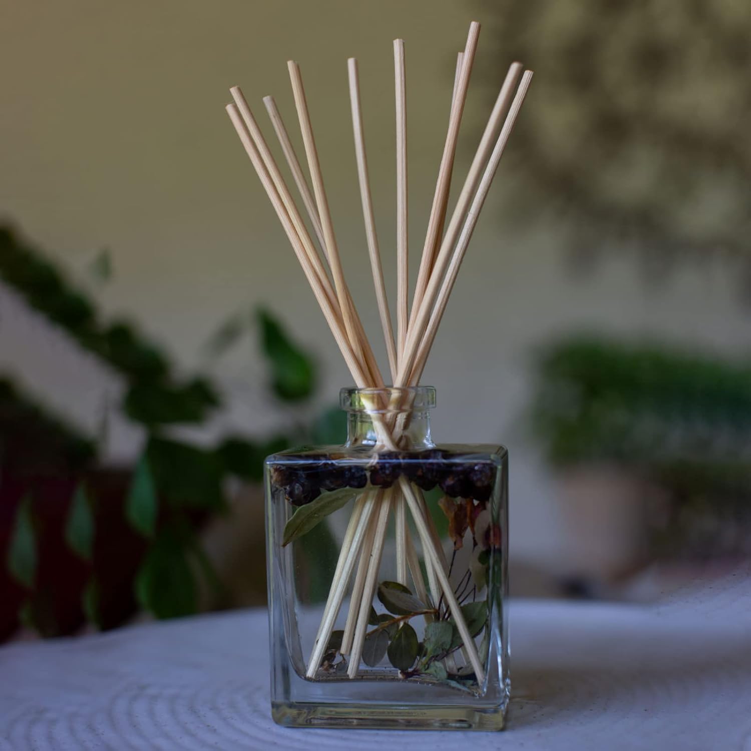 - Relax and unwind with the soothing aromas of black currant and bay laurel leaves, a fresh, modern fragrance hand-blended using high quality botanicals. This 4oz diffuser lasts for 4-6 months! This botanical diffuser is the perfect way to enrich your surroundings with fresh air, aromatherapy and a striking aroma.