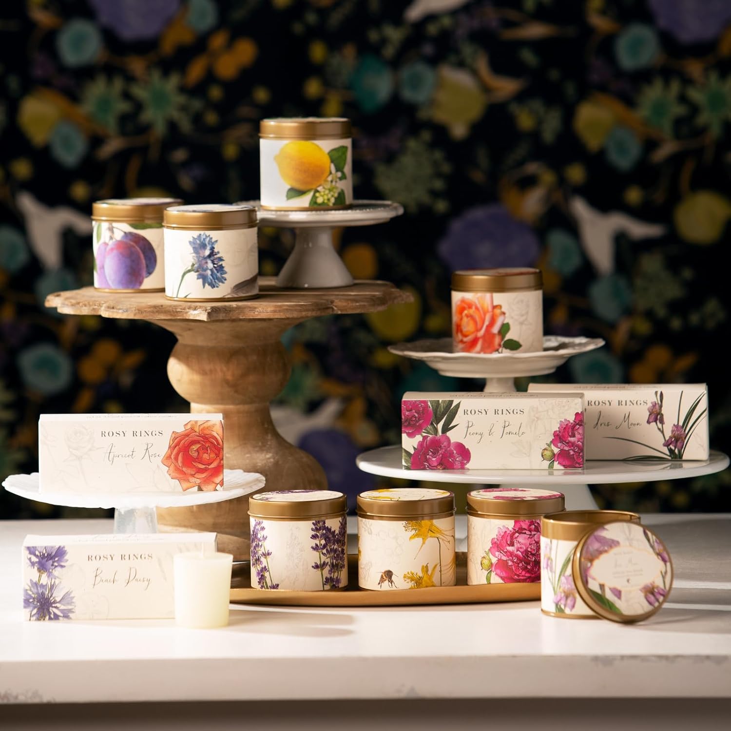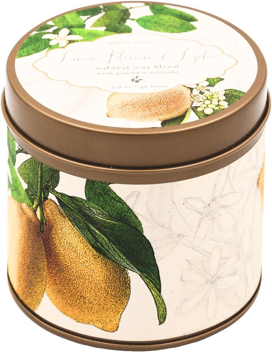 Rosy Rings Signature Tin Candle - Aromatherapy Fragrance Elegant Home Decor Gift Long Lasting 50 Hour Burn Botanical Floral Notes of Grapefruit, Lily, Lychee, Peach, Rose (Lemon Blossom & Lychee)