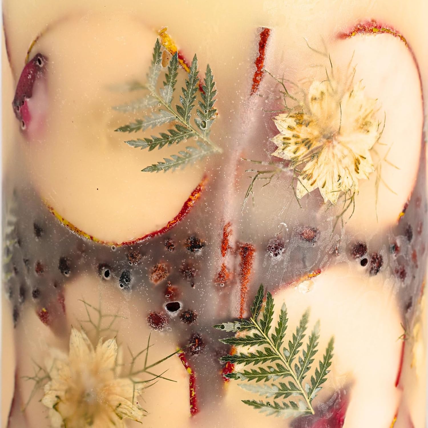 Rosy Rings Small Round Botanical Candle - Spicy Apple 5.5" Burn Time 120 Hours Notes of Cardamom, Cinnamon, Clove, Long Lasting Candles, Candle Gifts