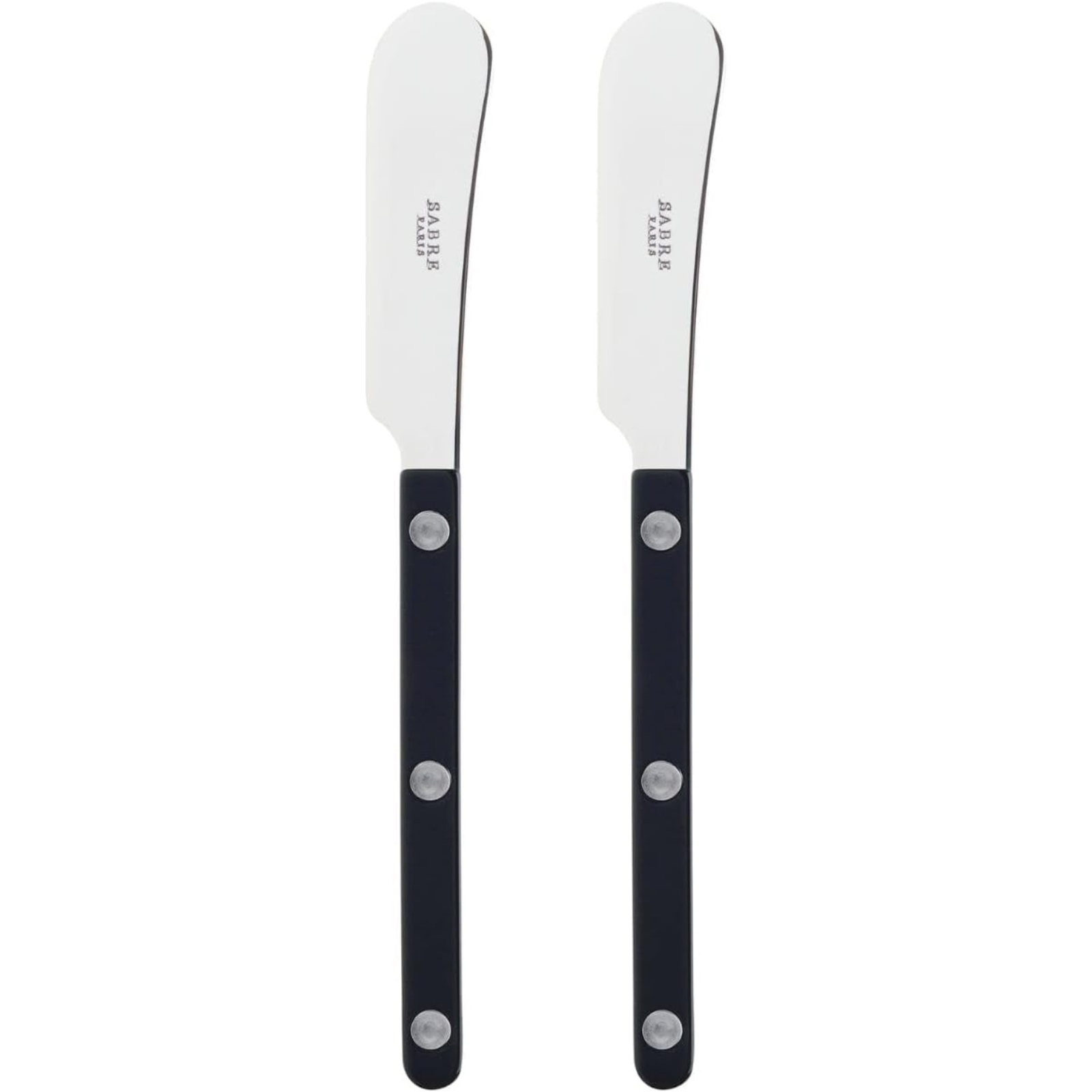 Set of 2 Spreader Knives 5.5 inches - Bistrot Collection - Perfect for Butter, Tapenades, Spreads - Stainless Steel & Nylon - Dishwasher Safe - Black - Brilliant Finish