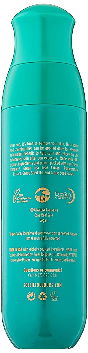 After sun, it’s time to pamper and revitalize your skin. We've formulated this aloe mist with 75%+ ORGANIC ingredients to cool and soothe your skin. You can even use the mist daily for essential anti-oxidant benefits as we've loaded this formula with our proprietary EcoSun Complex®, Green Tea Leaf Extract, Hyaluronic Acid, Grapeseed Oil, and Grape Seed Extract. Not your typical aloe product! If you have sunburn, windburn, chafing, itchiness, skin peeling, dry and dehydrated skin, this is the product for you. We love the sun, but we're on your skin's side!