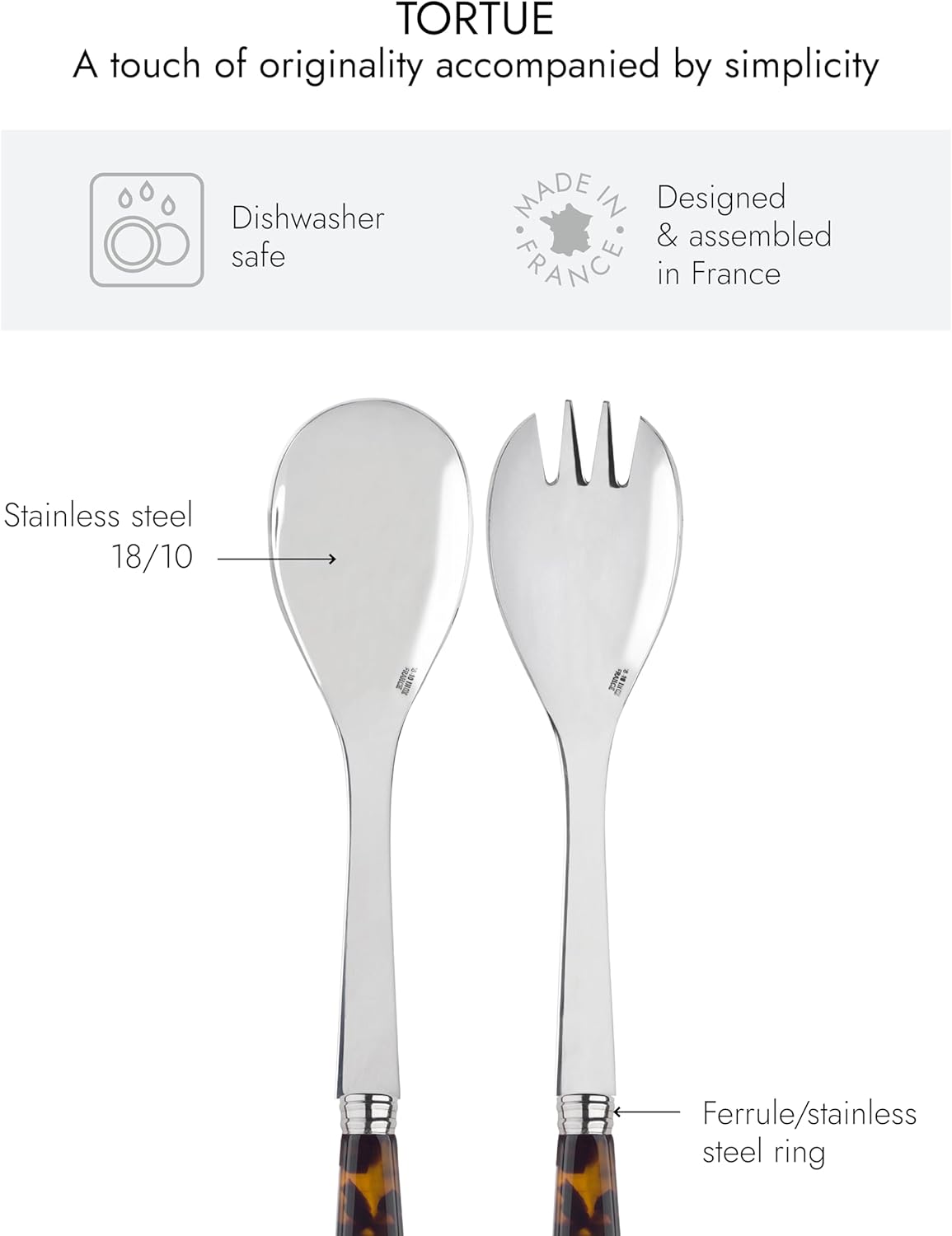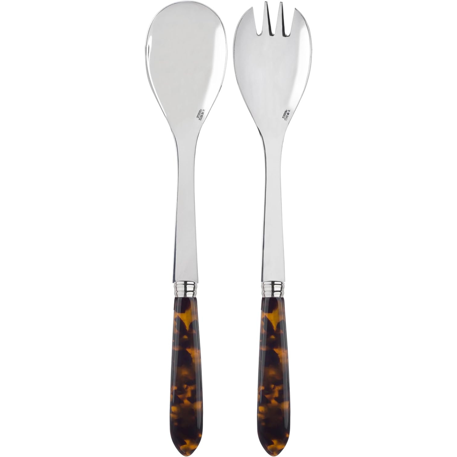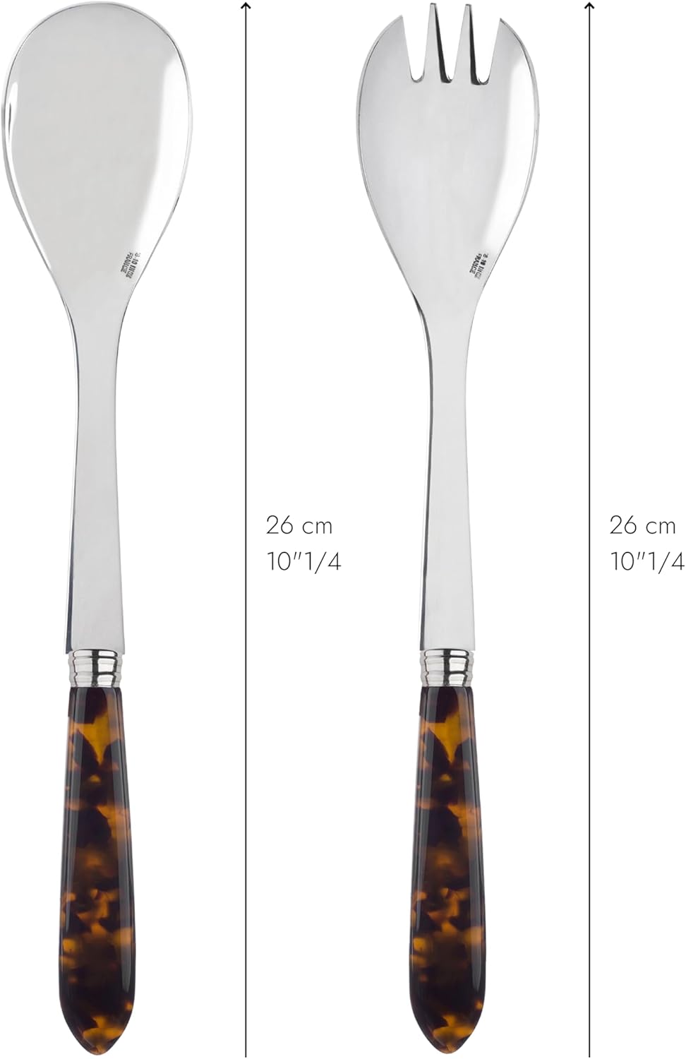 2-Piece Salad Servers 10.2 inches - Tortue Collection - Stainless Steel & Acrylic - Dishwasher Safe - Scaled Effect
