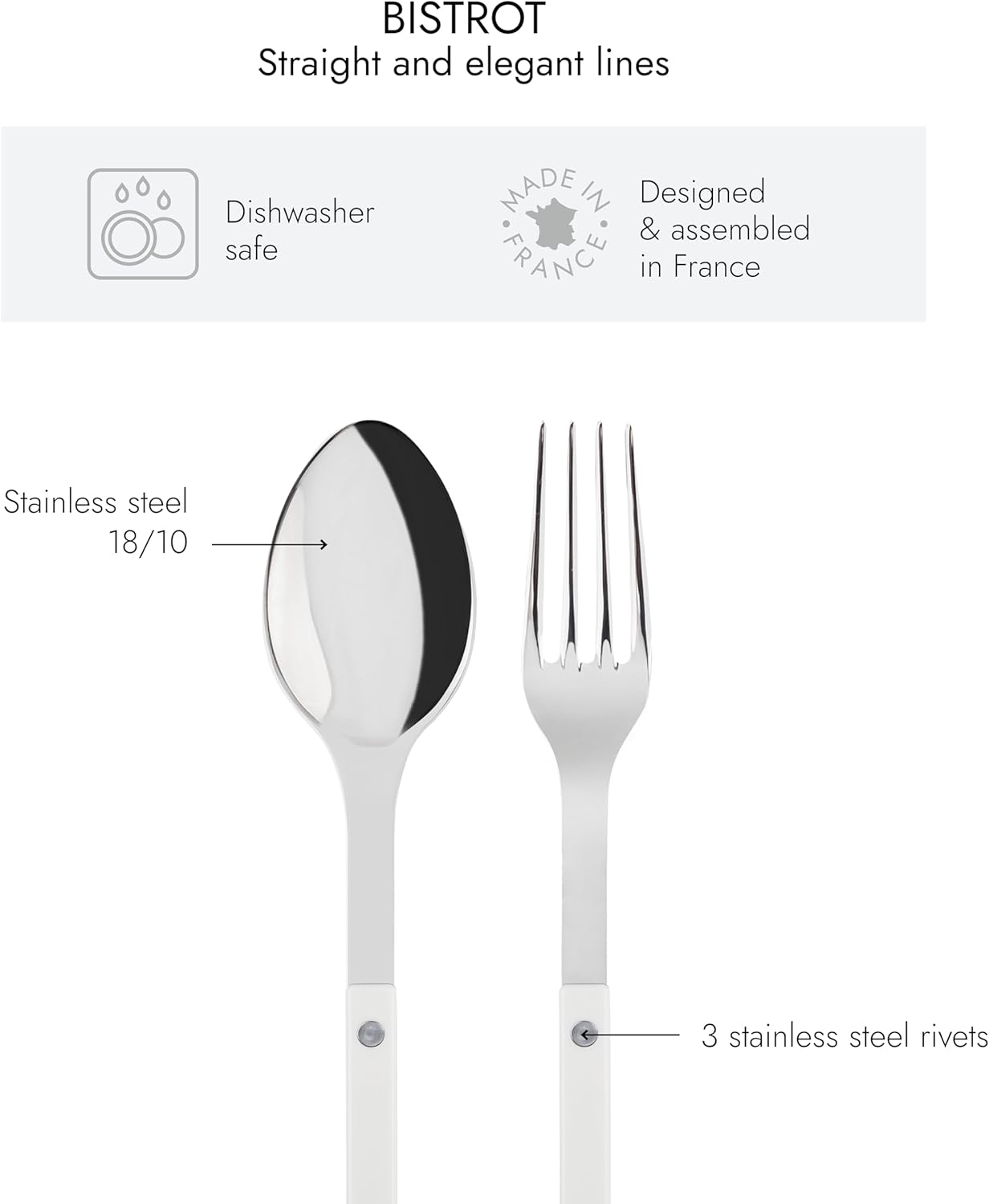 • DISHWASHER-SAFE AND MORE: Enjoy a cutlery set that is incredibly easy to maintain as it is dishwasher-safe and free from Bisphenol A, per the law 2012-1442. It will serve you well for many years!
