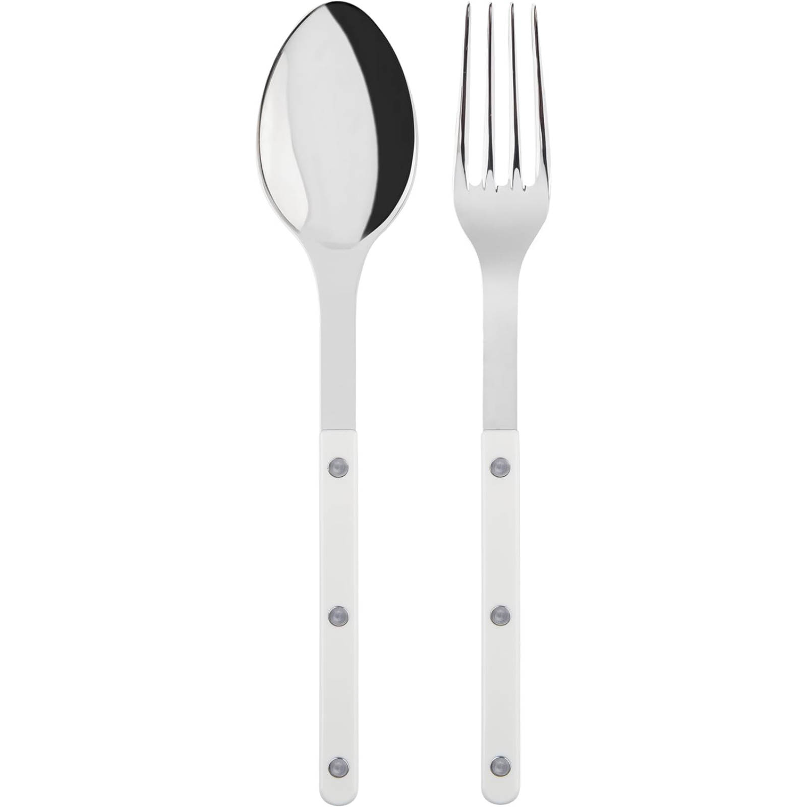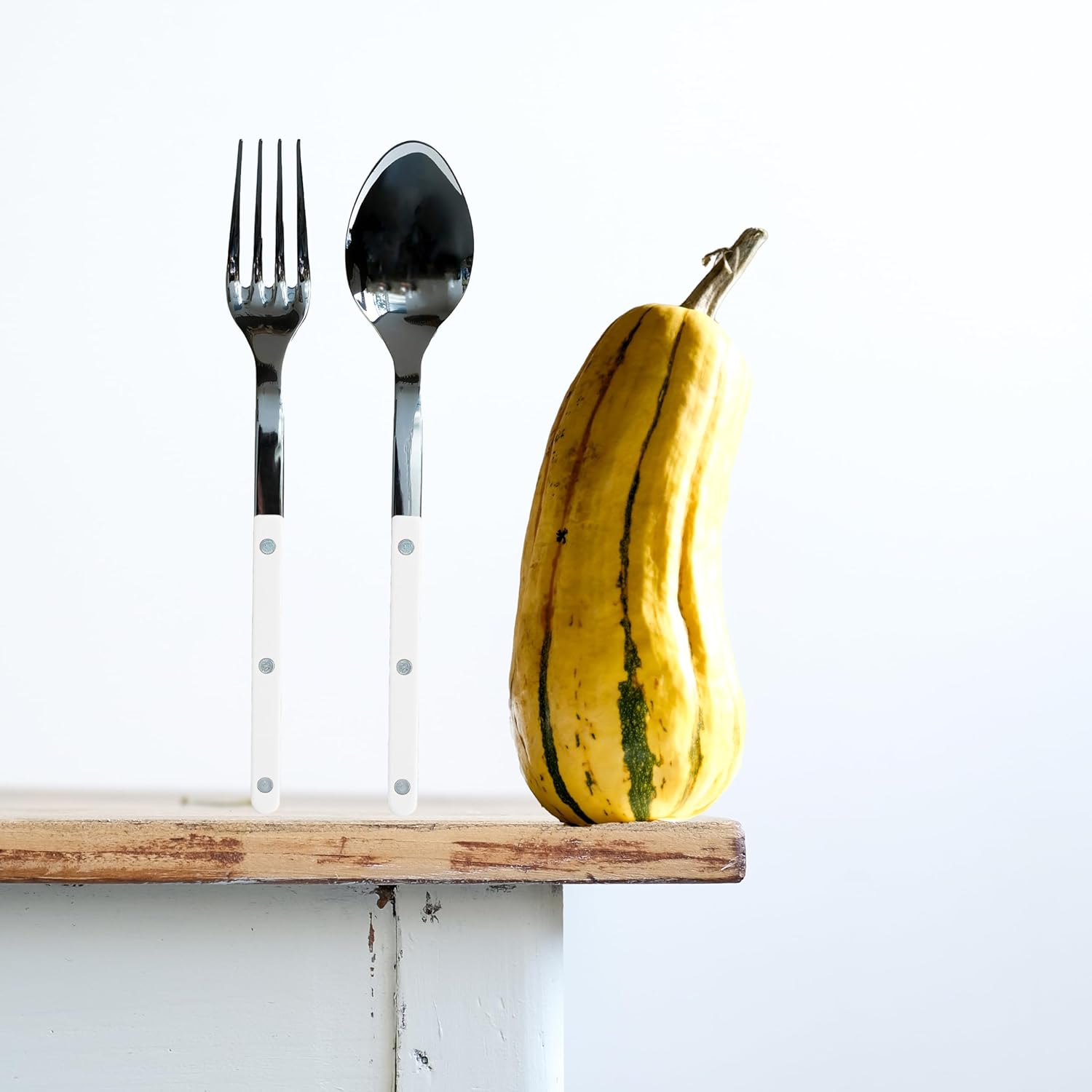2-Piece Serving Set - Bistrot Collection - Large Fork & Large Spoon - Stainless Steel & Nylon - Dishwasher Safe - White - Brilliant Finish