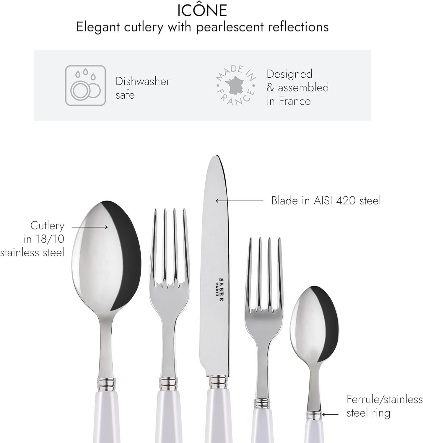 • ICÔNE COLLECTION: Introducing the Icône Collection, offering elegant cutlery with a distinctive touch. With its sleek lines and 21 colors featuring captivating mother-of-pearl reflections, you'll find the ideal silverware for your table.