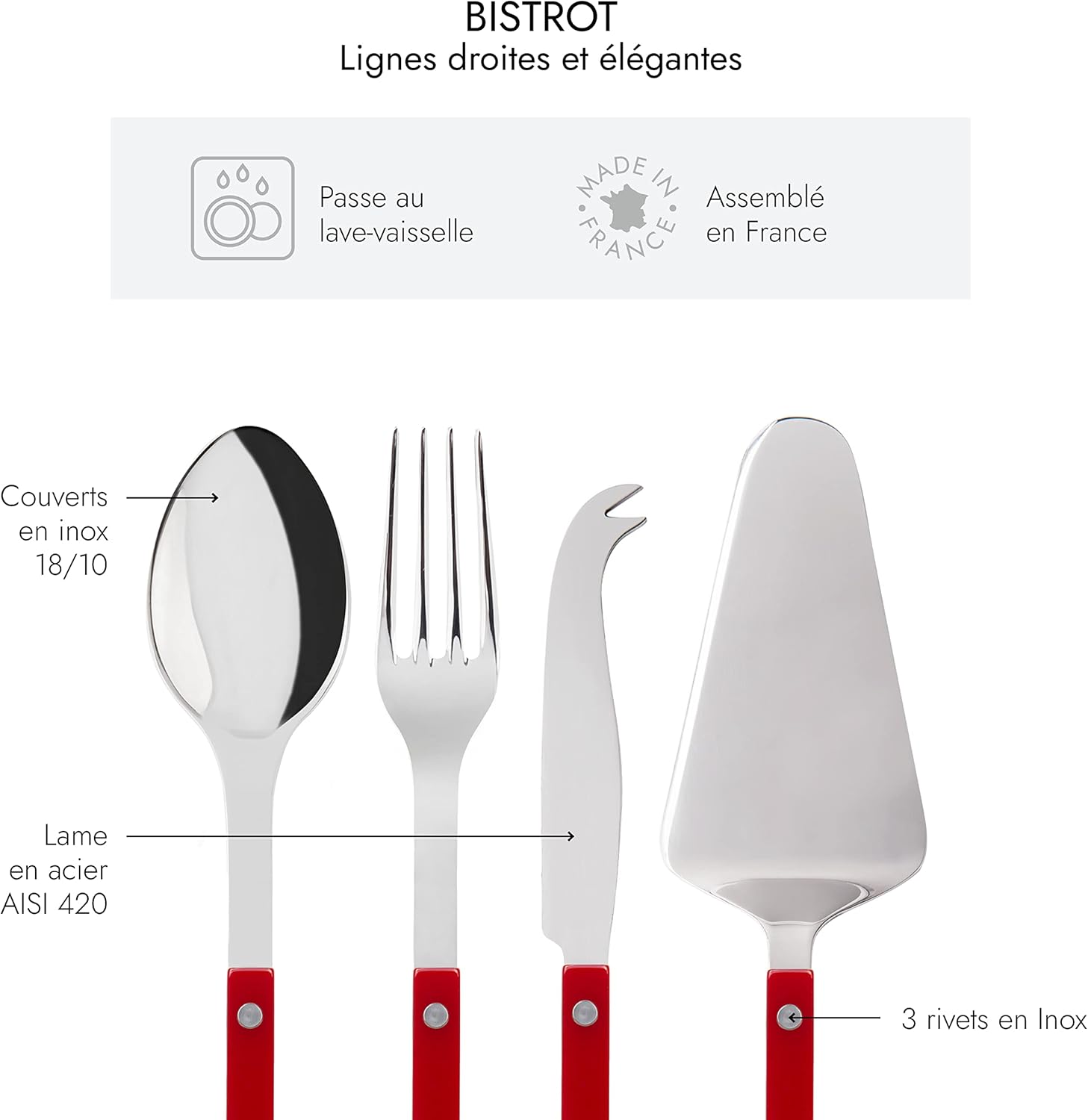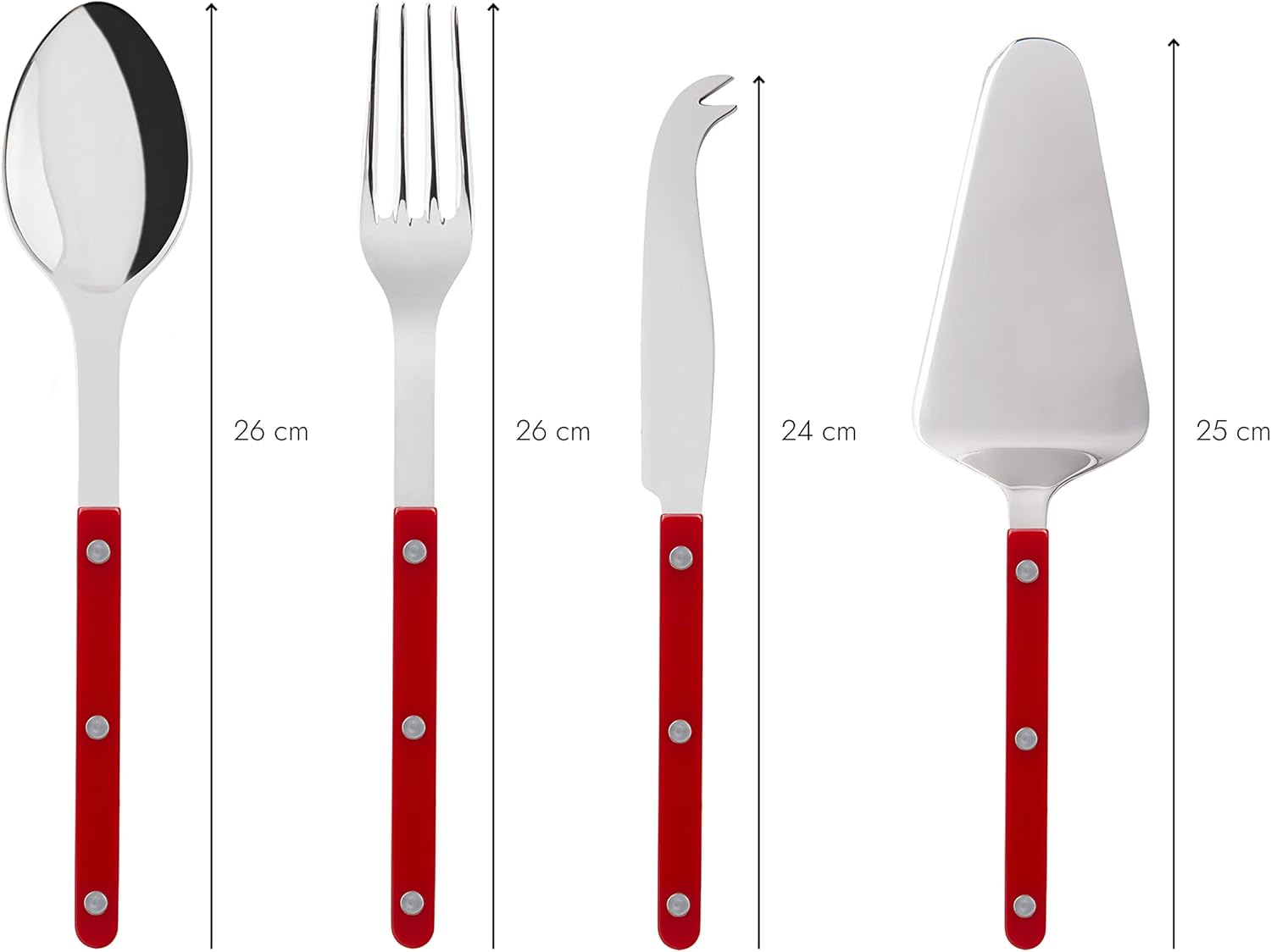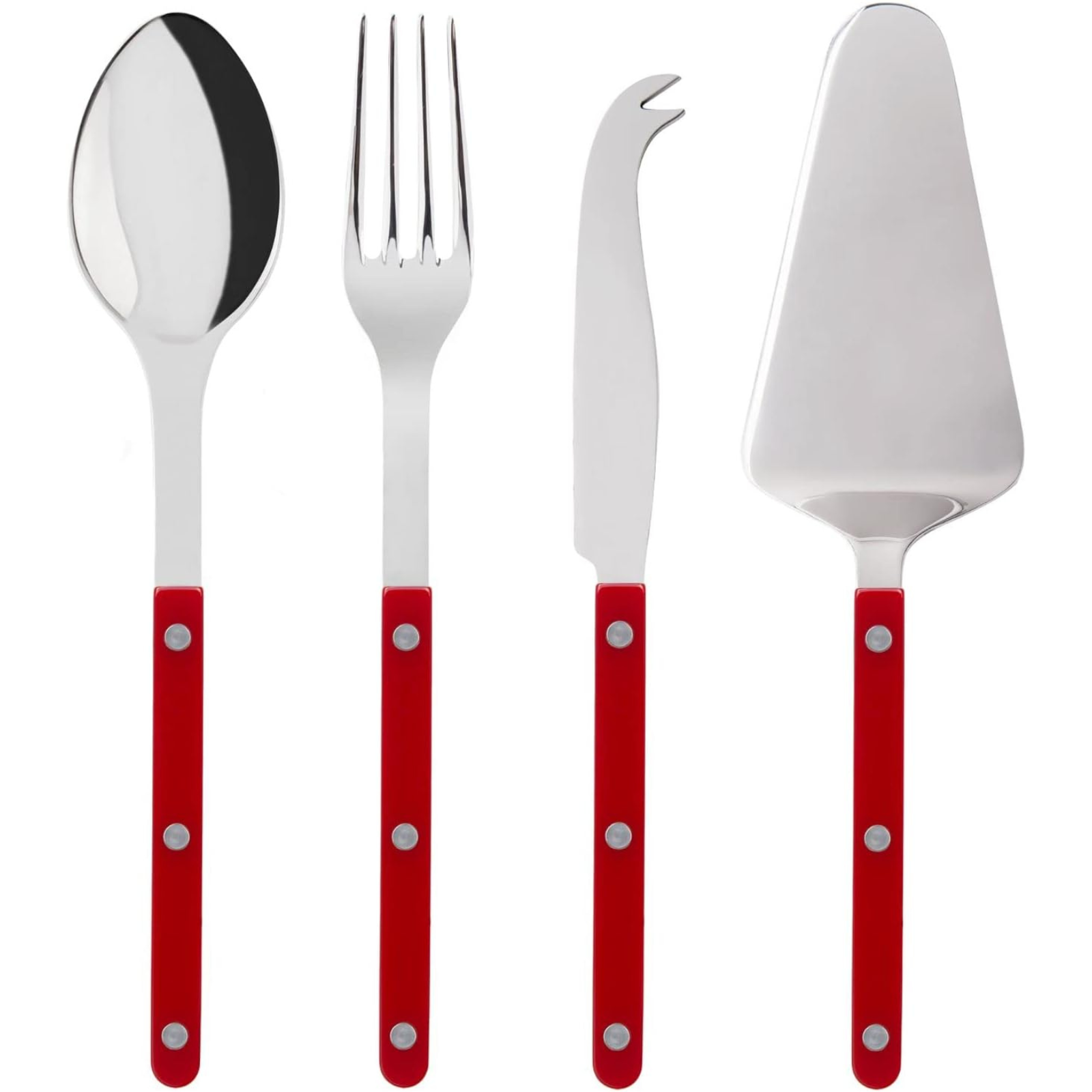 4-Piece Serving Set - Bistrot Collection - 2 Serving Flatware, Serrated Pie Server, Large Cheese Knife - Stainless Steel & Nylon - Dishwasher Safe - Burgundy - Brilliant Finish