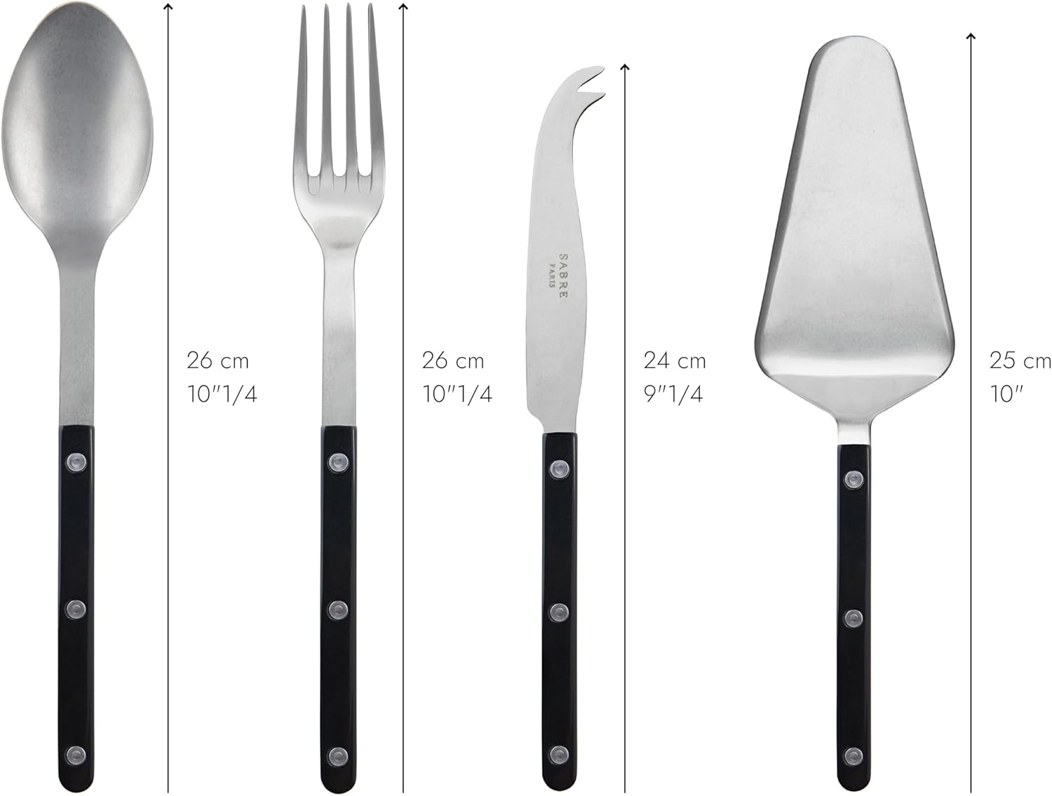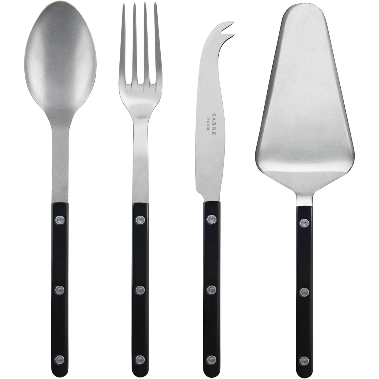 4-Piece Serving Set - Bistrot Vintage Collection - 2 Serving Flatware, Serrated Pie Server, Large Cheese Knife - Stainless Steel & Nylon - Dishwasher Safe - Black - Mat Finish