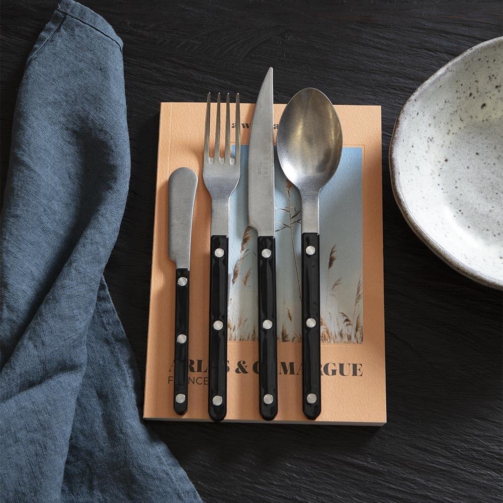 - STAINLESS STEEL FLATWARE: This set combines a beautiful play of premium materials with cutlery crafted from 18/10 stainless steel, boasting a vintage finish, and handles made of nylon. The knife blade is made of AISI 420 steel.