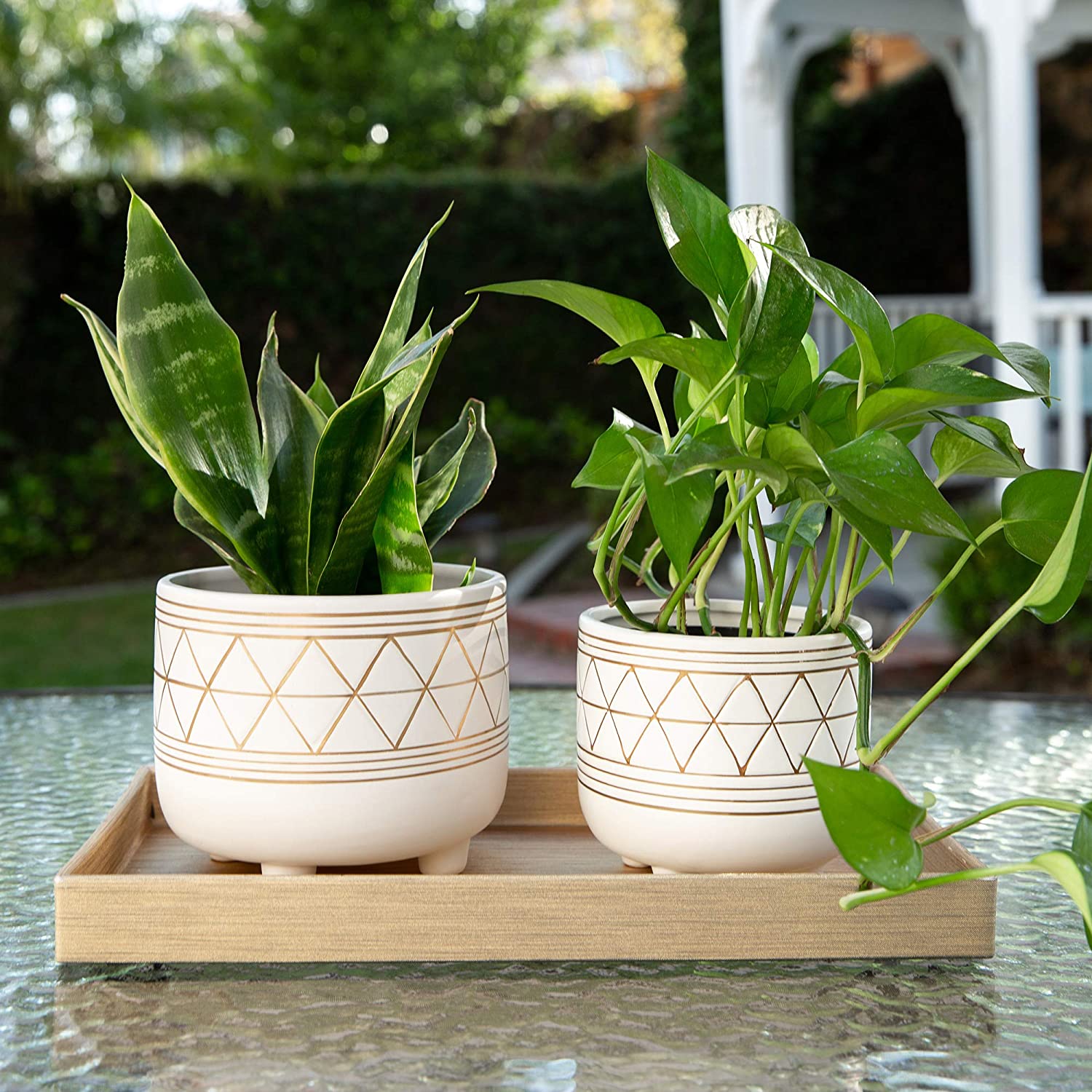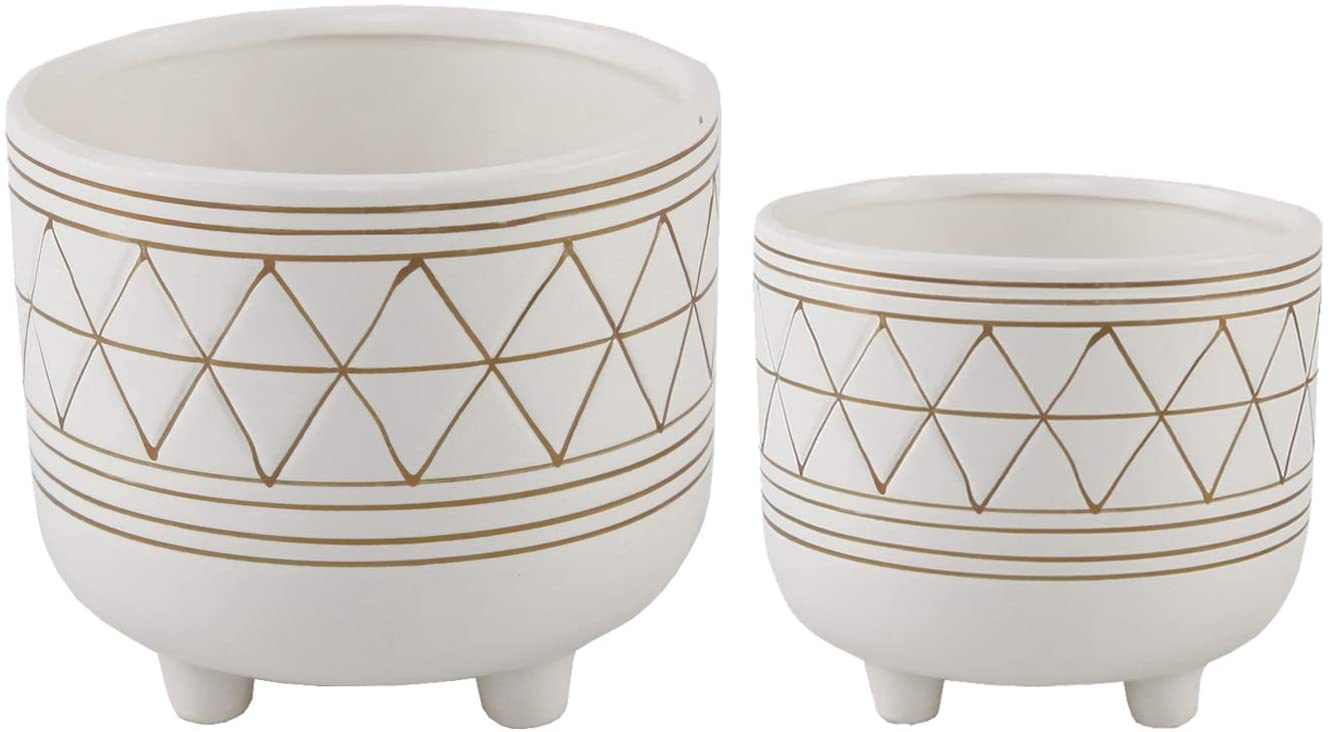 - DESIGN - White geometric patterns and neutral colors blend with any style room. Durable Ceramic legs that is great for display or for holding plants (Empty Planters Only, Plants not included). There is no drainage hole, so no spill and no mess! We strive to make your life easier so you that you can have more time for the important things in life. Buy a few at a time, so you can start your own little Garden indoors! Dress up your plant for a Mid Century Modern, Boho-chin, Rustic, Farmhouse look.