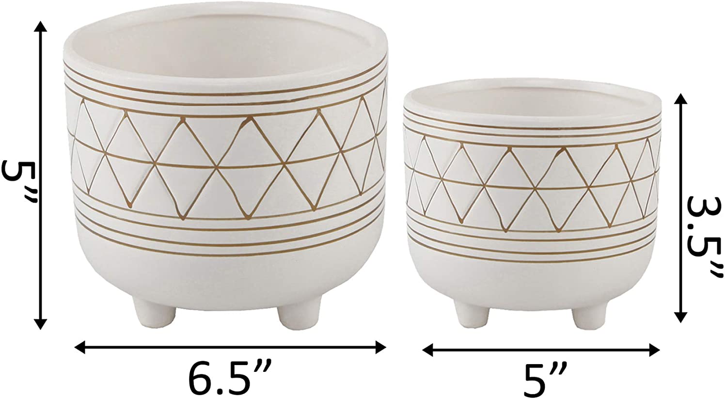 - QUANTITY - 2 Pieces as a set. Larger Planter Size: 6.5” opening diameter x 5”H including the mini ceramic feet, Smaller Planter Size:4.75” opening diameter x 4.25”H including the mini ceramic feet