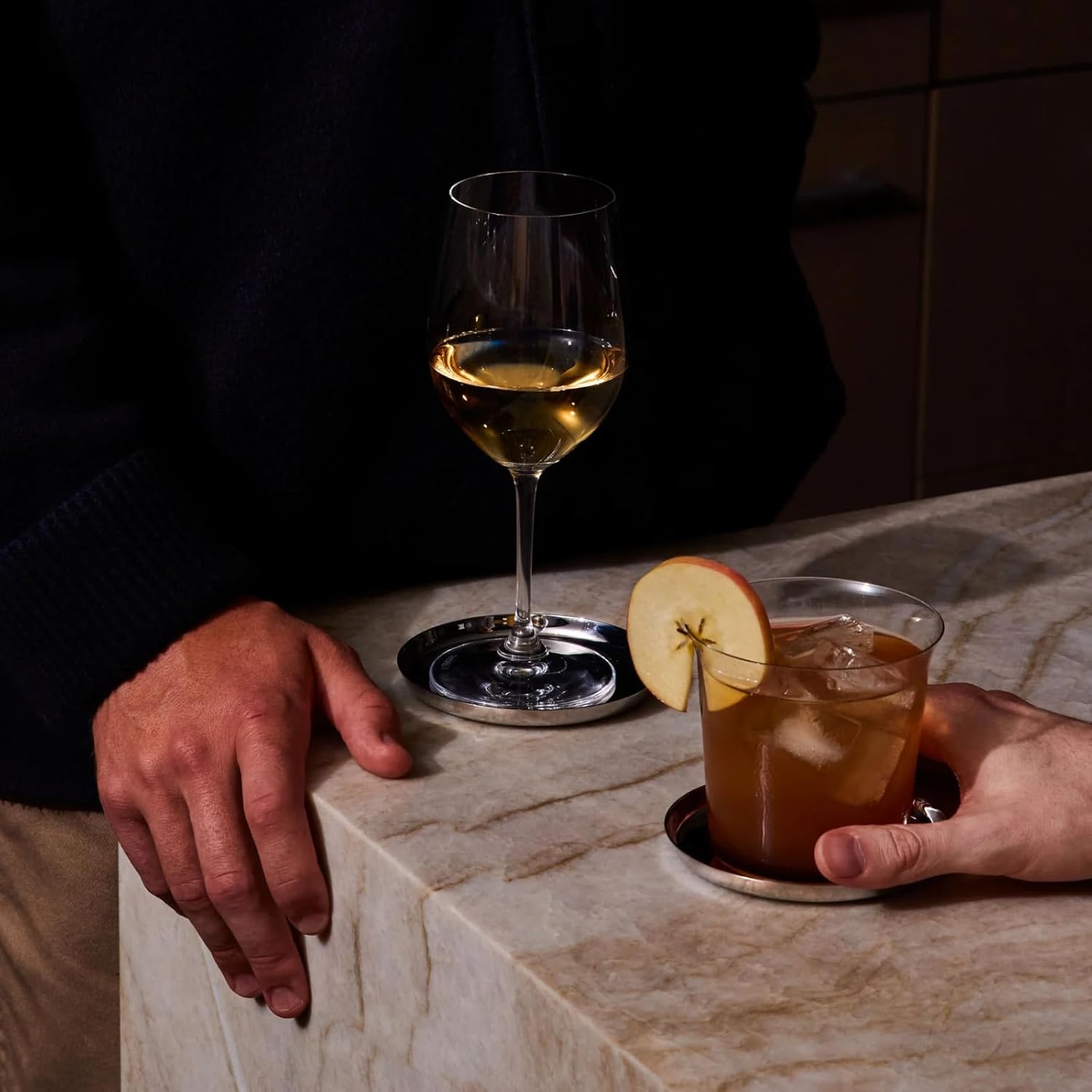 - Shallow Lip Catches Condensation and Spills: Each coaster includes a subtle raised edge designed to contain stray drips and condensation. It keeps surfaces dry while maintaining a clean, streamlined look beneath your glassware or bottles.
