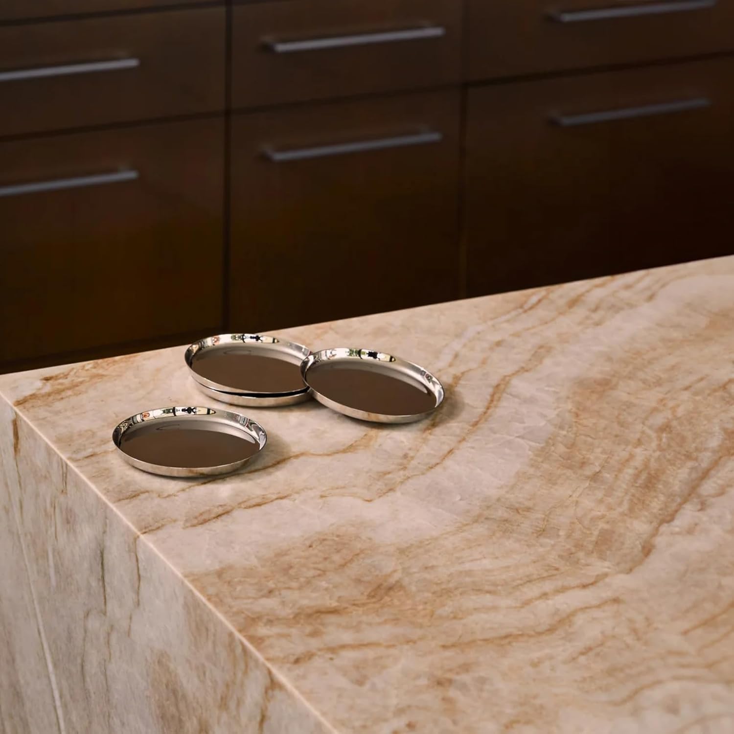 - Polished Stainless Steel with Sculptural Simplicity: Crafted from heavyweight stainless steel, Puddle Coasters feature a sleek, reflective finish that brings understated elegance to any setting. Their minimal form complements modern and classic tabletops alike.