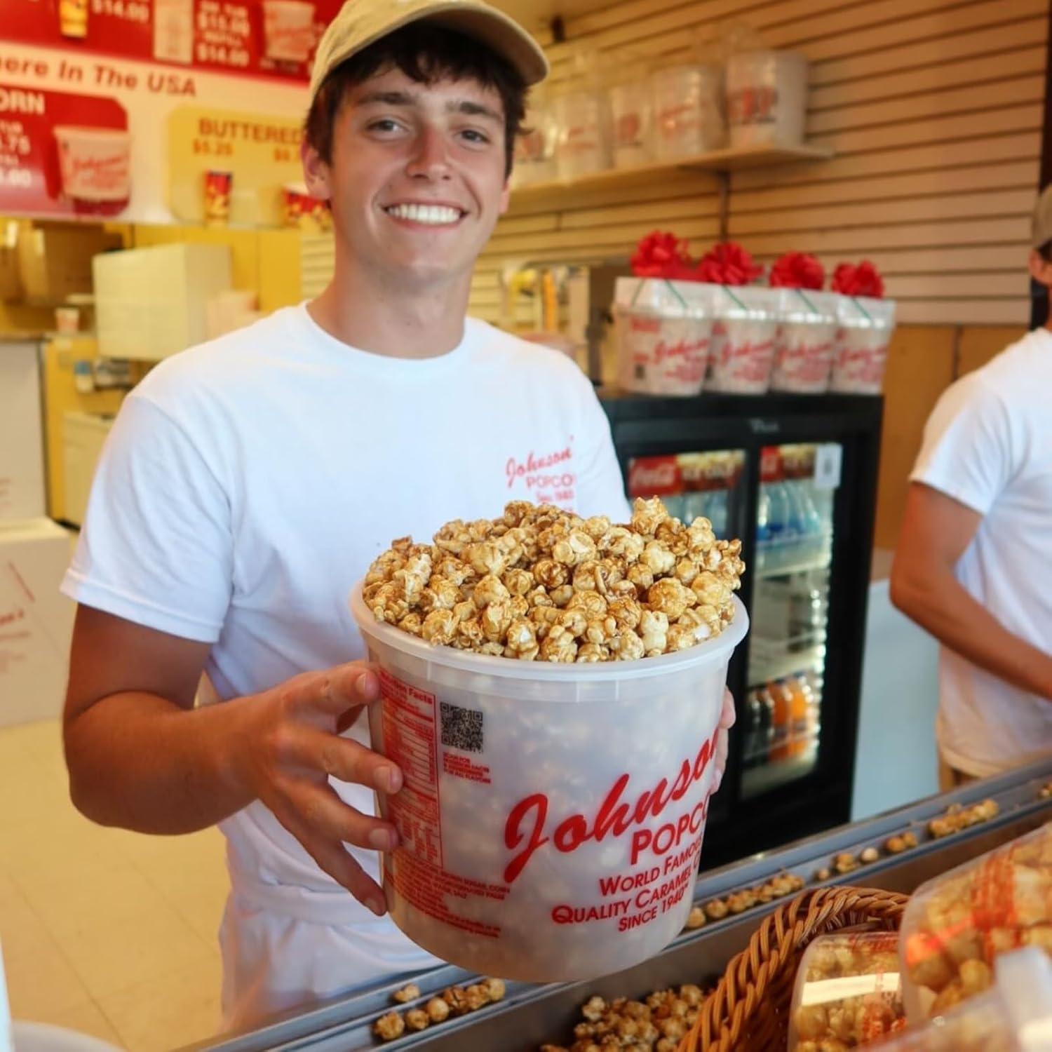 Johnson's Popcorn Caramel Popcorn Handmade, Freshly Popped Gourmet Sweet & Crunchy Delicious Treat for Family Parties, Movie Night Snack Gift Ready 28oz - World Famous Quality Caramel Corn Since 1940!