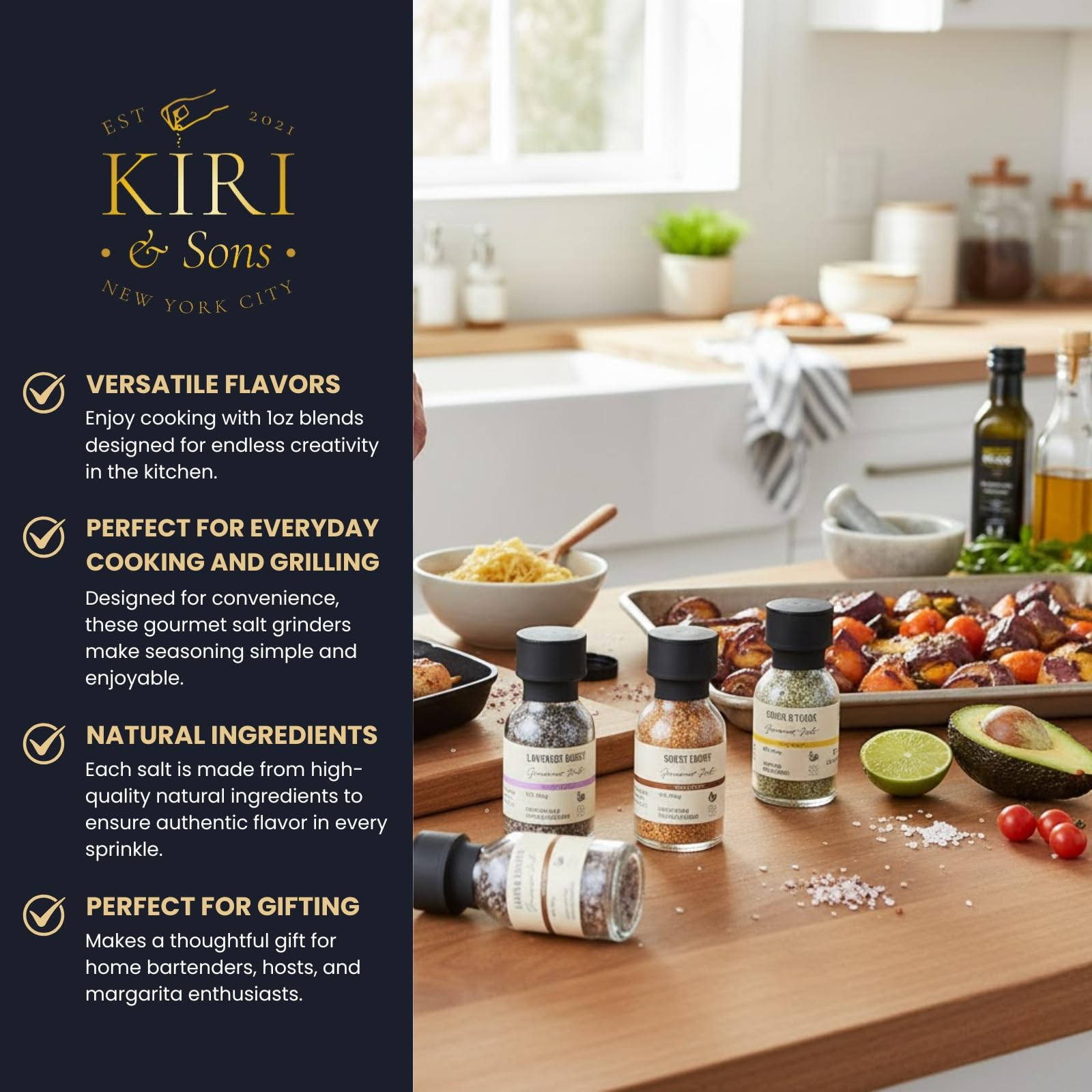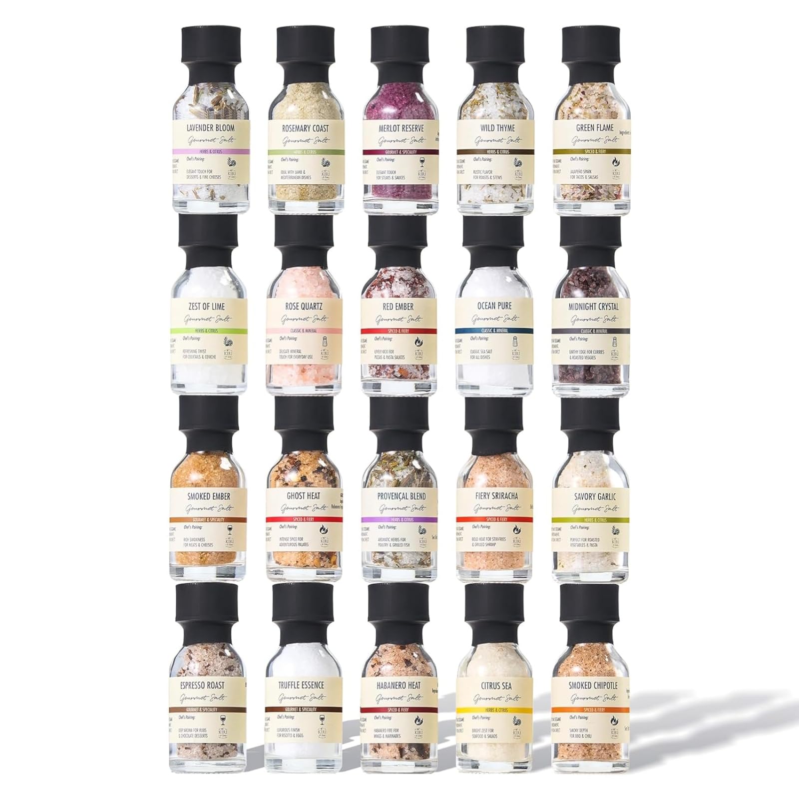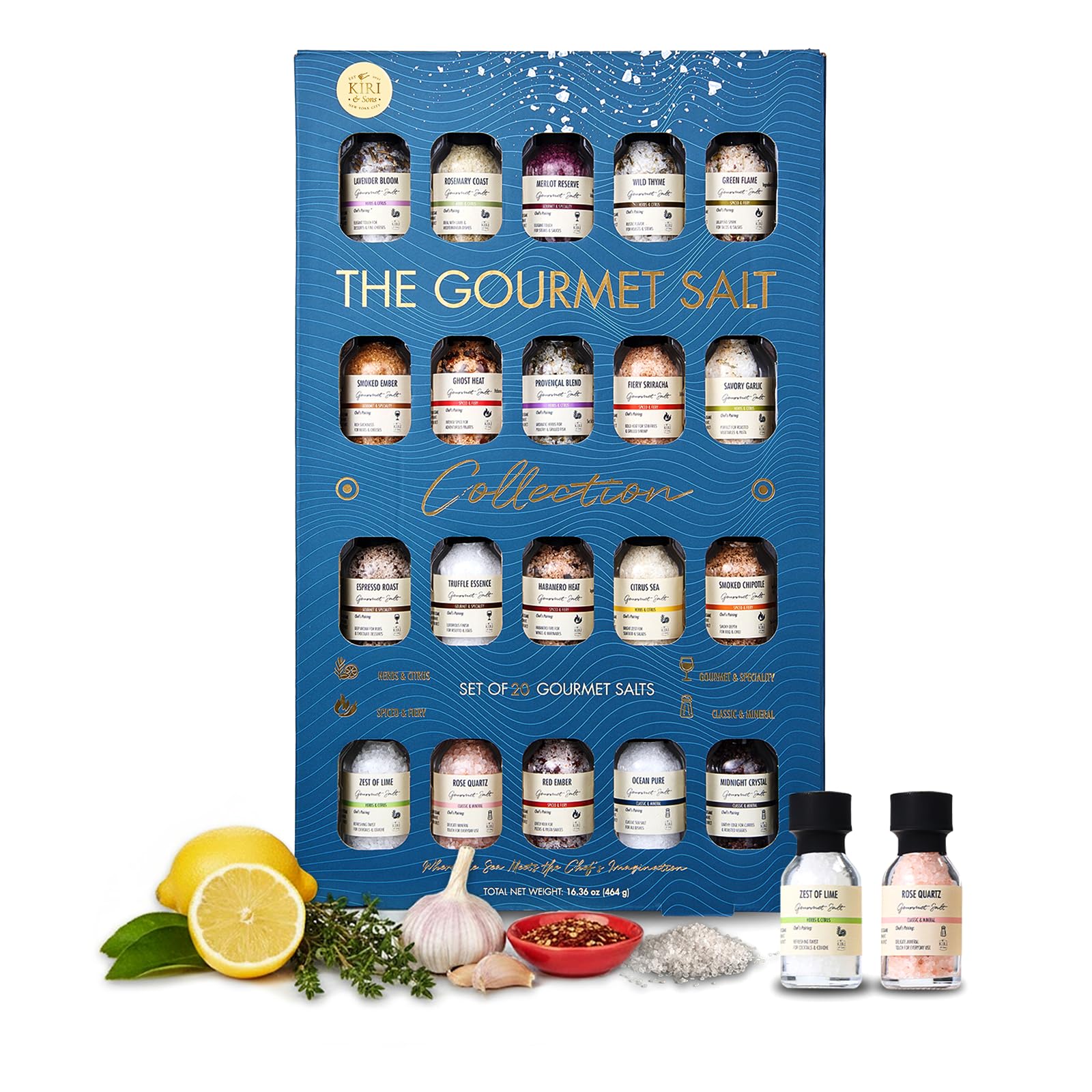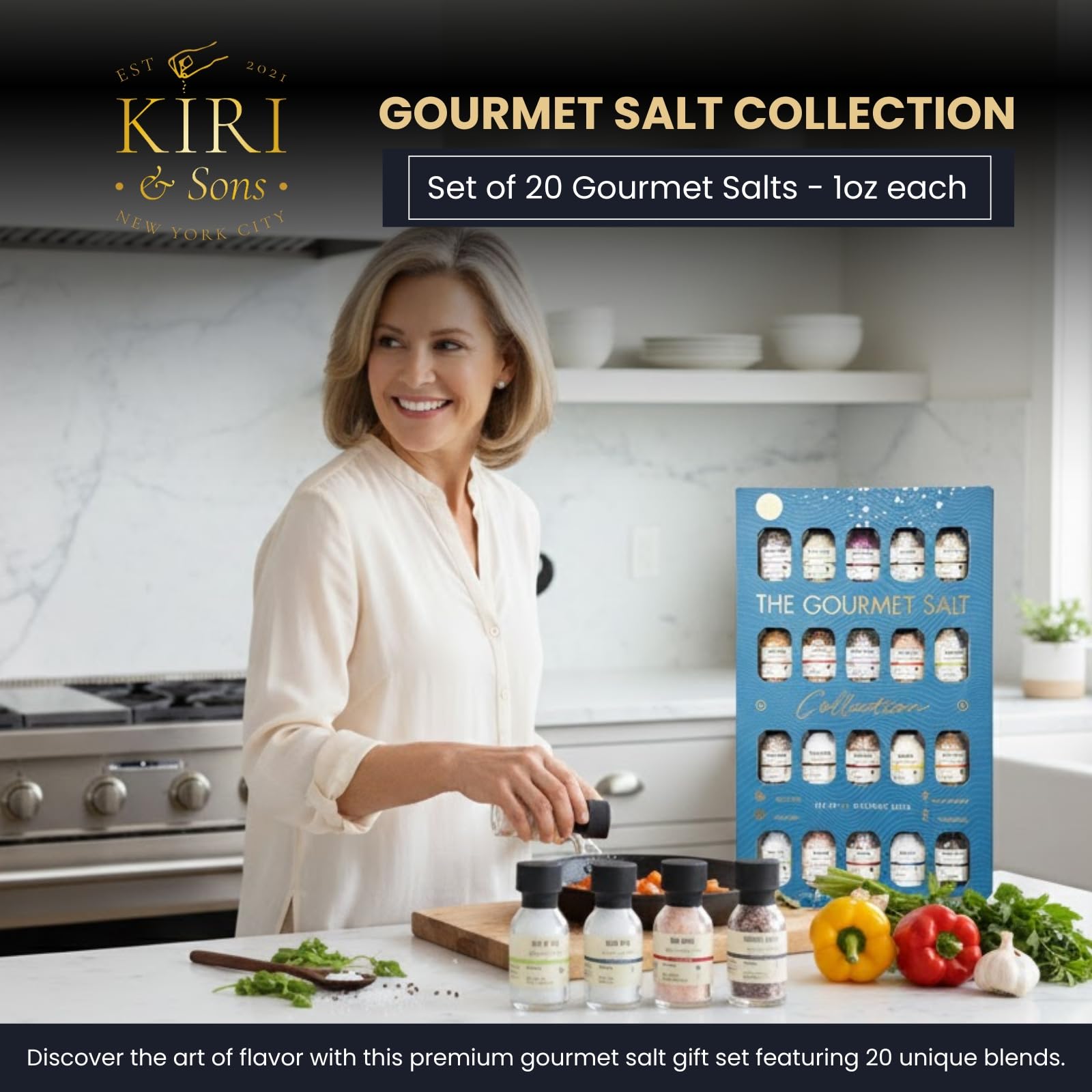 Discover new layers of flavor with the Kiri & Sons Gourmet Salt Collection Set of 20, a premium seasoning gift set designed for chefs and home cooks alike. This includes 20 unique blends such as rosemary, truffle, citrus, sriracha, garlic, and smoked varieties to enhance any dish. Each grinder is filled with a handcrafted spice blend made from natural ingredients, perfect for grilling, roasting, or everyday cooking. Whether used as a rub, flavor enhancer, or finishing touch, these gourmet seasonings turn simple meals into culinary masterpieces. Beautifully packaged and versatile, this set makes an elegant gift for anyone who loves cooking or entertaining.