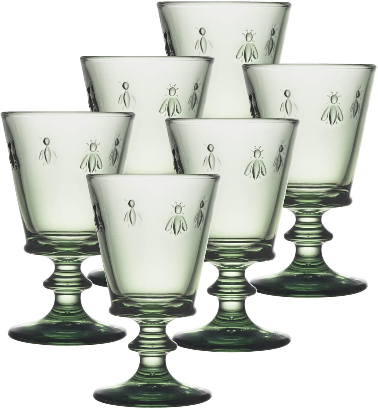 - LA ROCHERE'S DRINKWARE SET: Set of 6, 9 ounce stemmed verdigris green wine glasses with the iconic Napoleon l'abeille (Bee) embossed on the modern silhouette adds style and elegance to any casual or formal celebration.