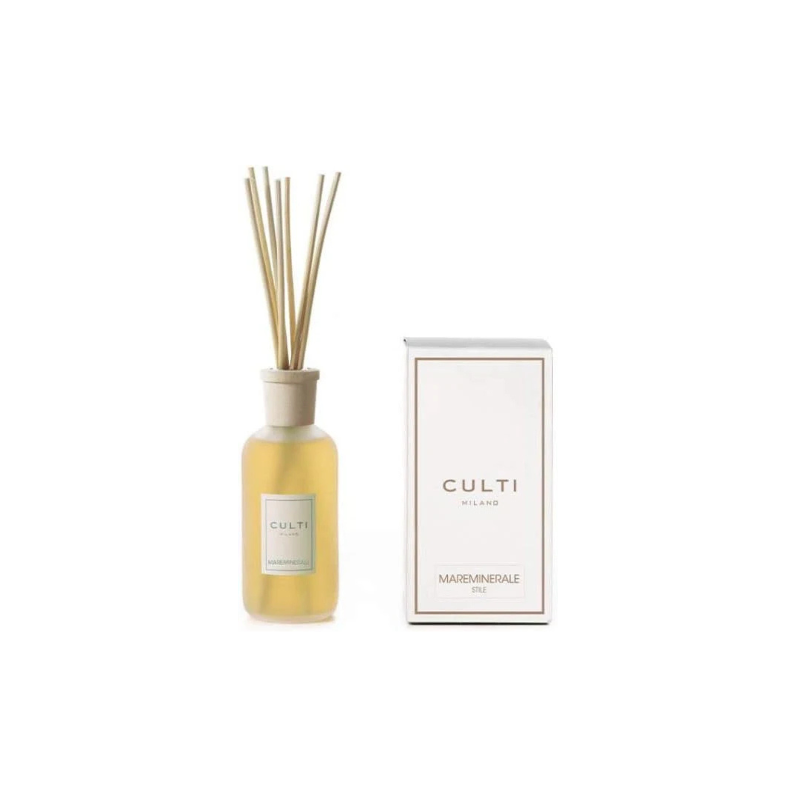 - Glass bottles with ivory-coloured labels and cap in natural maple wood. The aesthetic character of the CULTI STILE line evokes purity and elegance. Mareminerale: The sun rises above the sea: footsteps land softly on the shore, absorbing the pungent energy of iodine and the damp smell of driftwood smoothed by the rocking of the waves. The vigour of a dawn walk along the water’s edge.