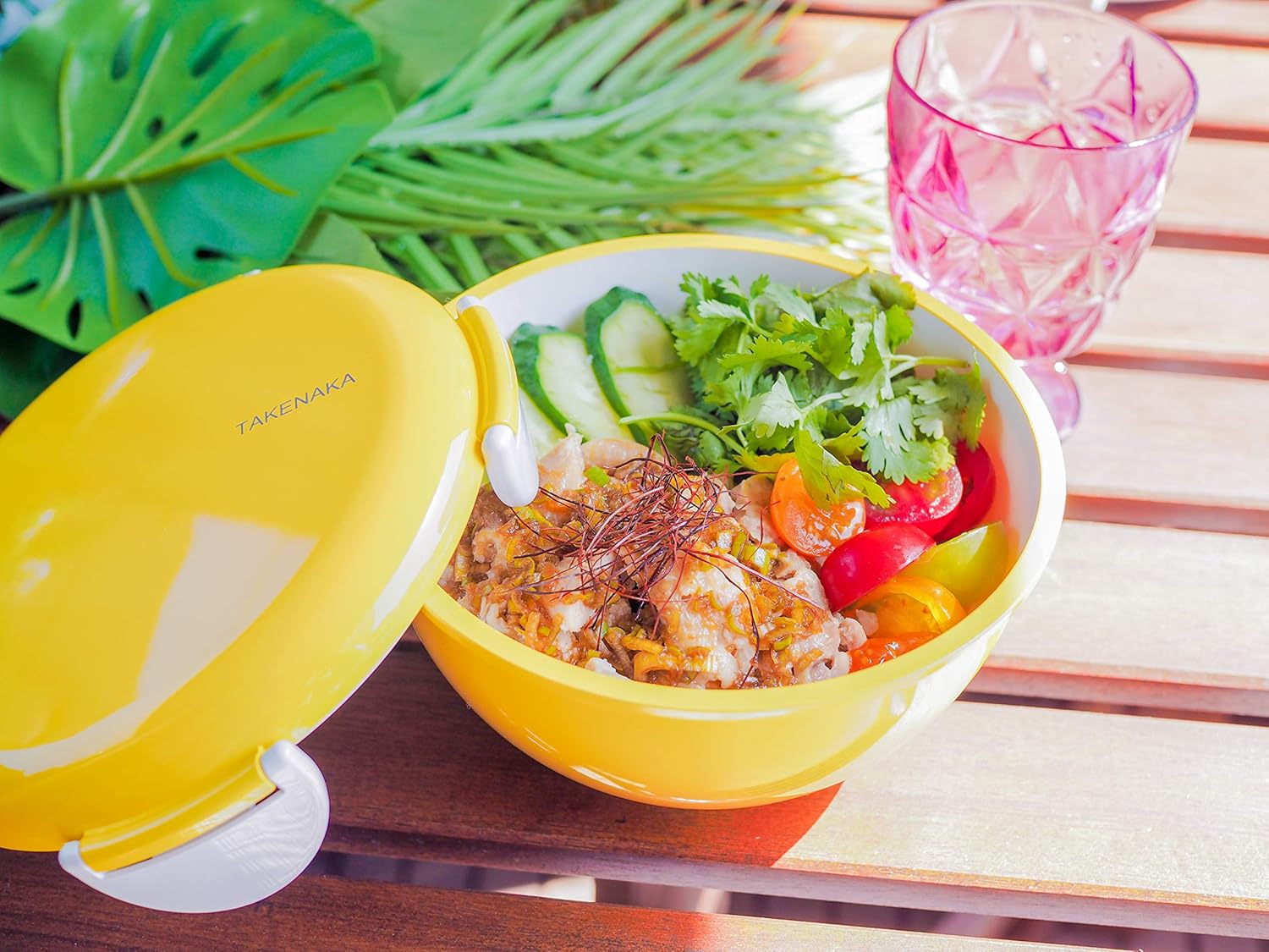 TAKENAKA Bento Bowl for perfect lunch, Eco-Friendly Lunch Box Made in Japan, Recycle Plastic Bottle, Microwave and Dishwasher Safe, Bento Box (Lemon Zest)