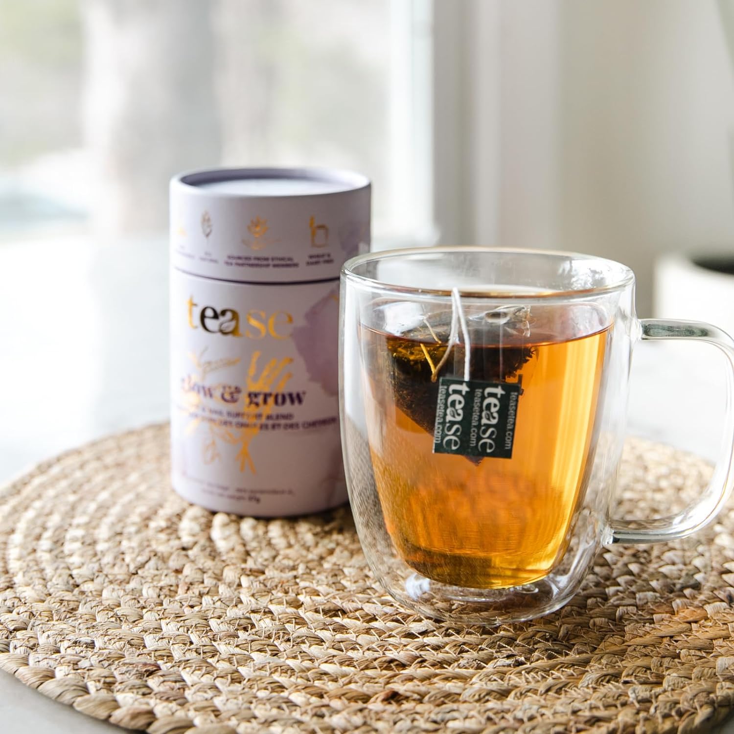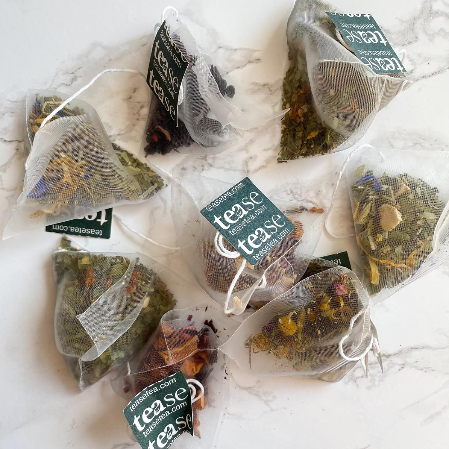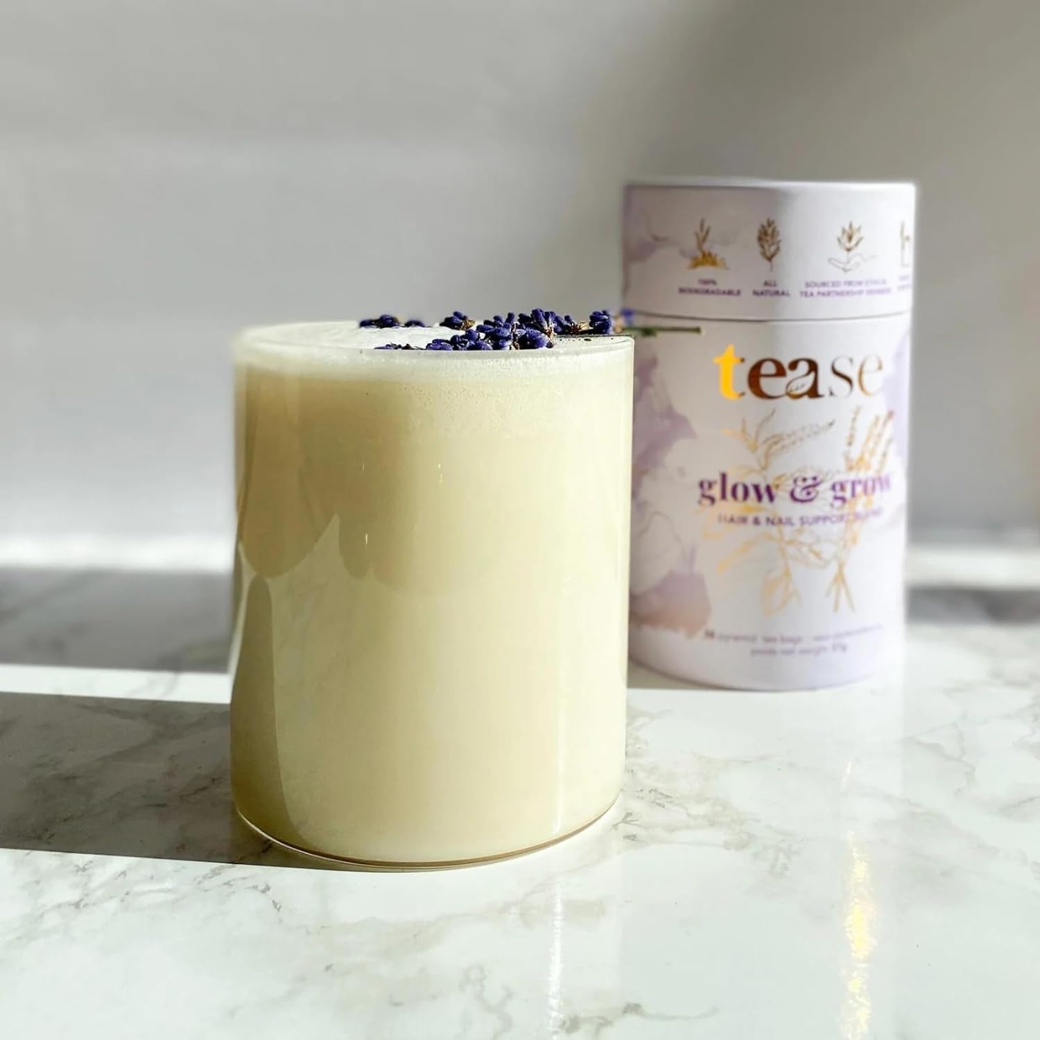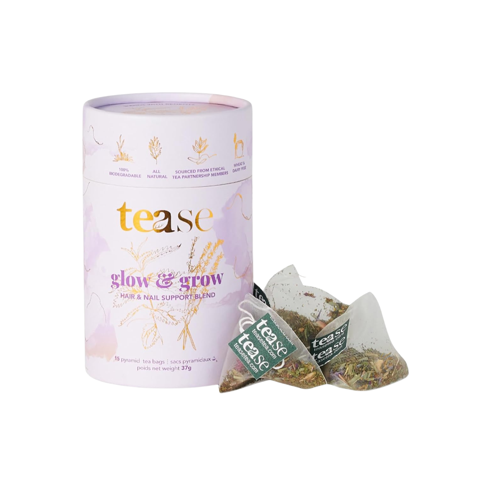 • Tease Tea Organic Tea Gift Set: Unlock Your Inner Glow & Grow: Immerse yourself in the world of beauty and wellness with our 15-piece botanical pyramid tea bag infuser sachets tube gift set. This extraordinary collection features the "Glow & Grow" blend, thoughtfully crafted with organic nettle, rooibos, spearmint, and lavender to support your hair and nails from within. A nettle rich, beauty blend to help sip into promote strengthening of hair & nail growth. Caffeine free.