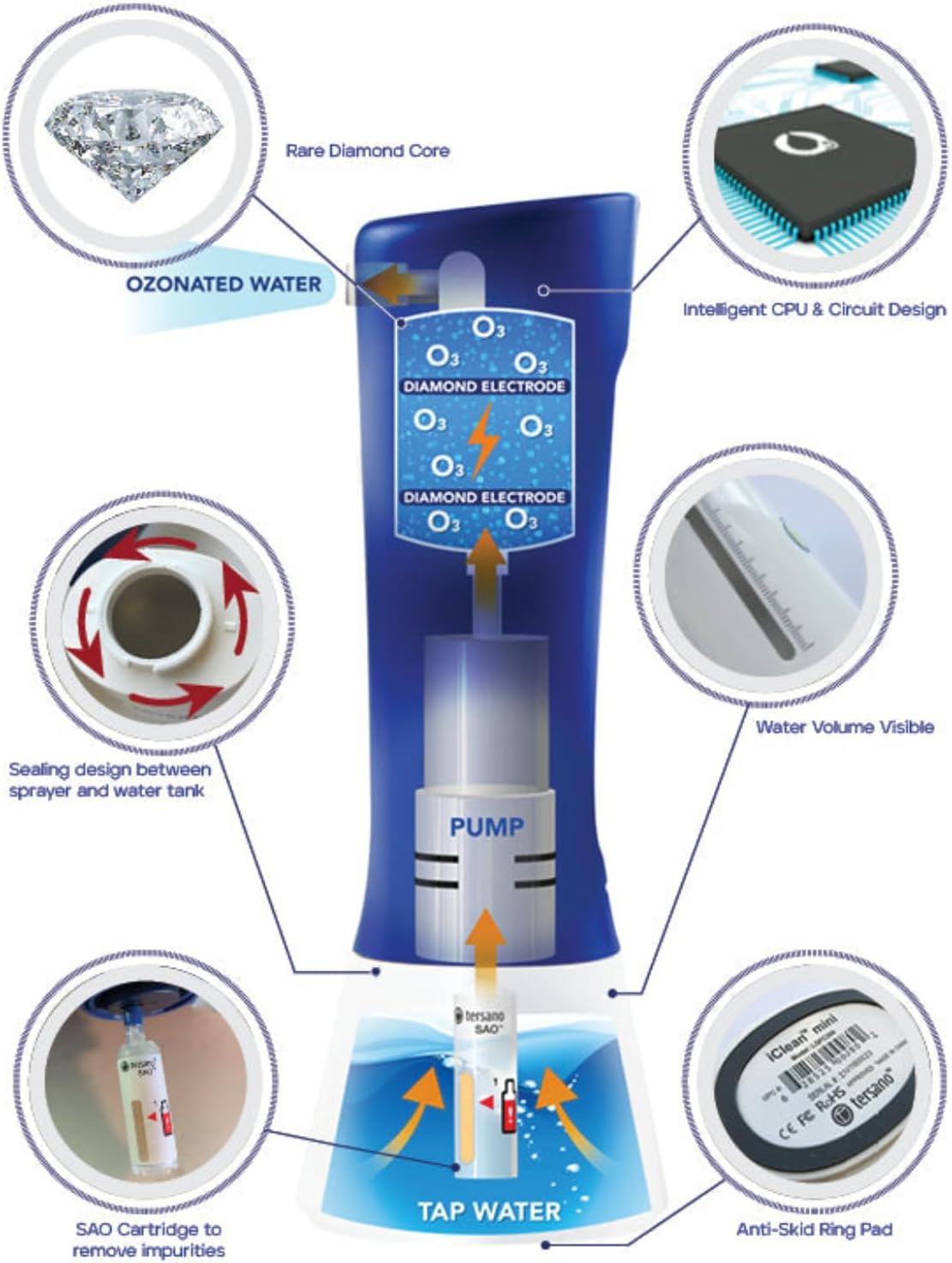 Tersano iClean Mini | Multipurpose Cleaner Award Winning All-Purpose Cleaner | Multi Surface Cleaning Supplies for Home, Fabrics, Glass, Appliances | Turns Water Into a Cleaner!