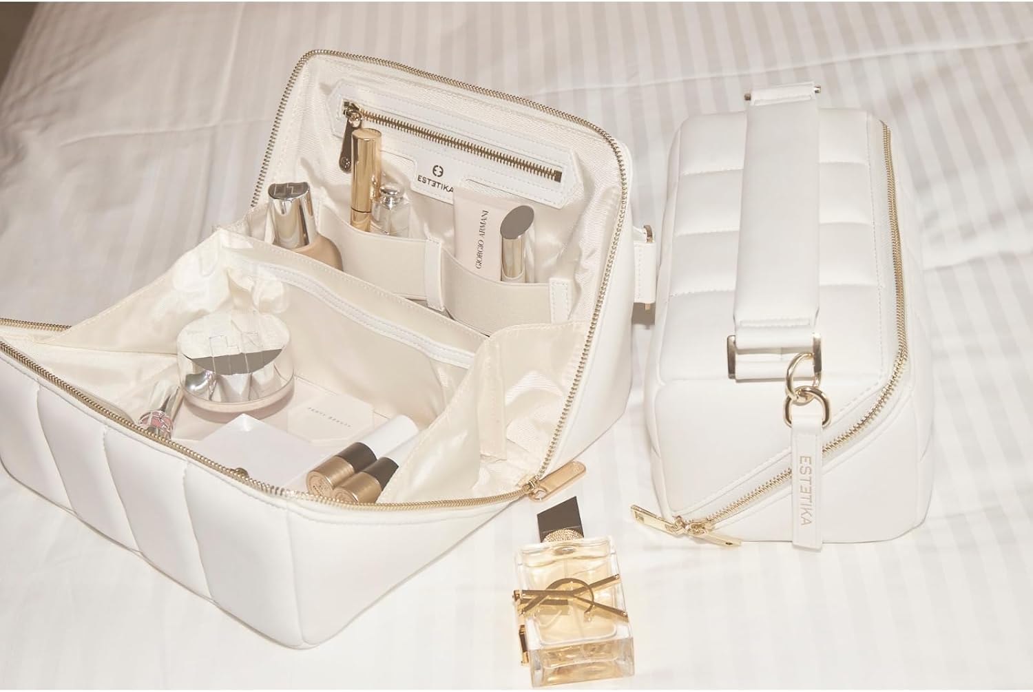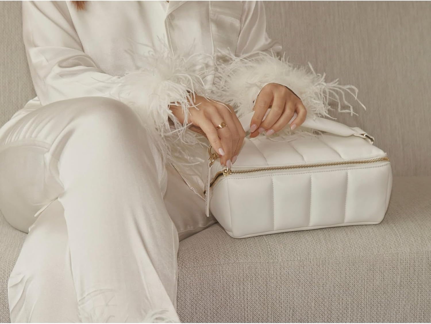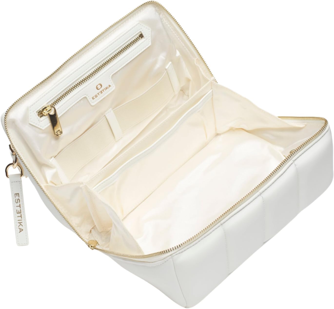 - Puffy Quilted Elegance for Modern Glam: Designed to turn heads, The BIGEE features a plush, puffy quilted exterior in a soft white hue, blending timeless luxury with contemporary charm. Its rectangular quilting pattern creates a sophisticated yet playful aesthetic, making it the perfect travel companion or vanity staple. Whether for a weekend getaway or a daily organizer, this stylish makeup bag adds a touch of elegance to your beauty routine, keeping essentials secure and easily accessible.
