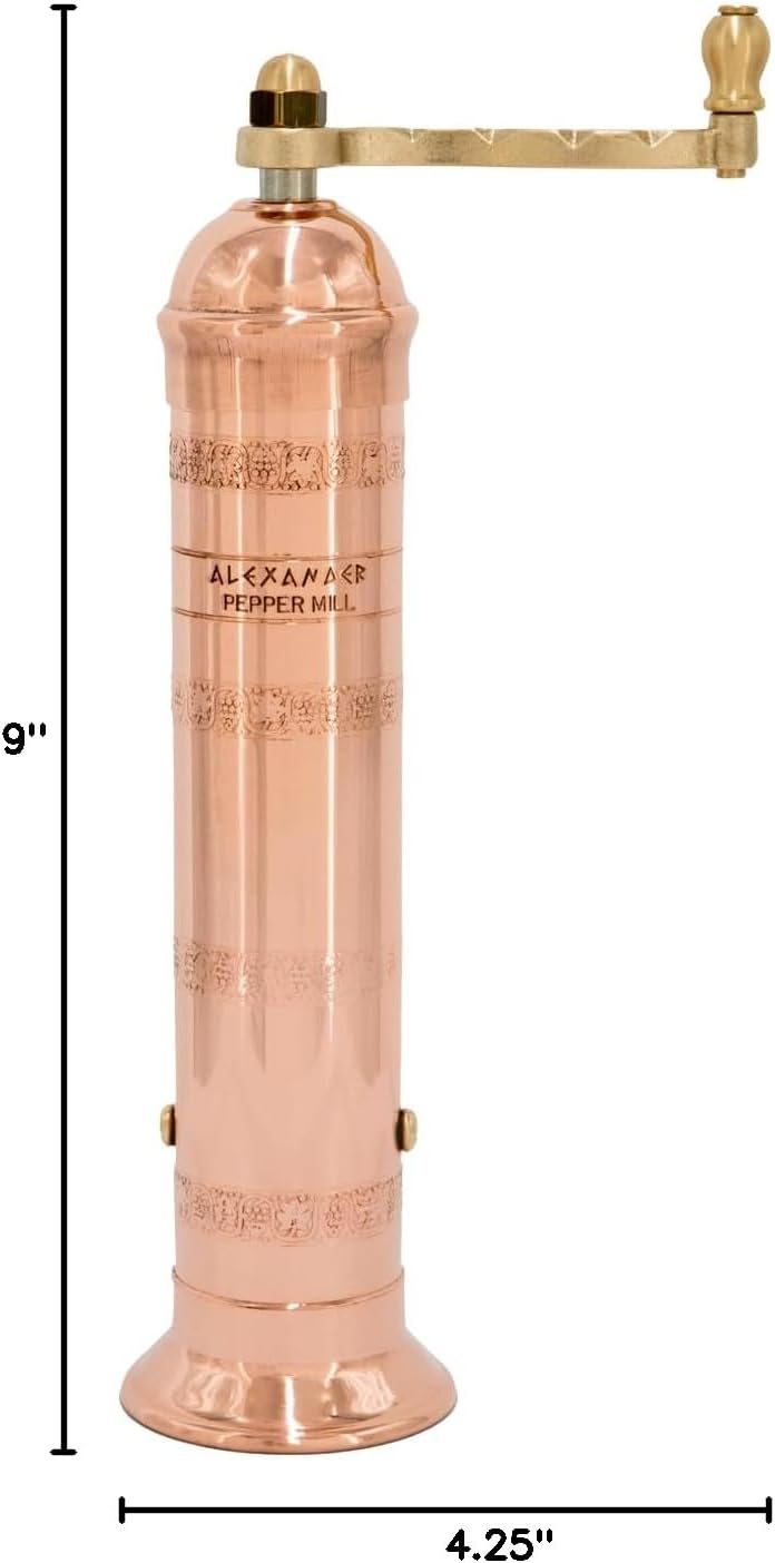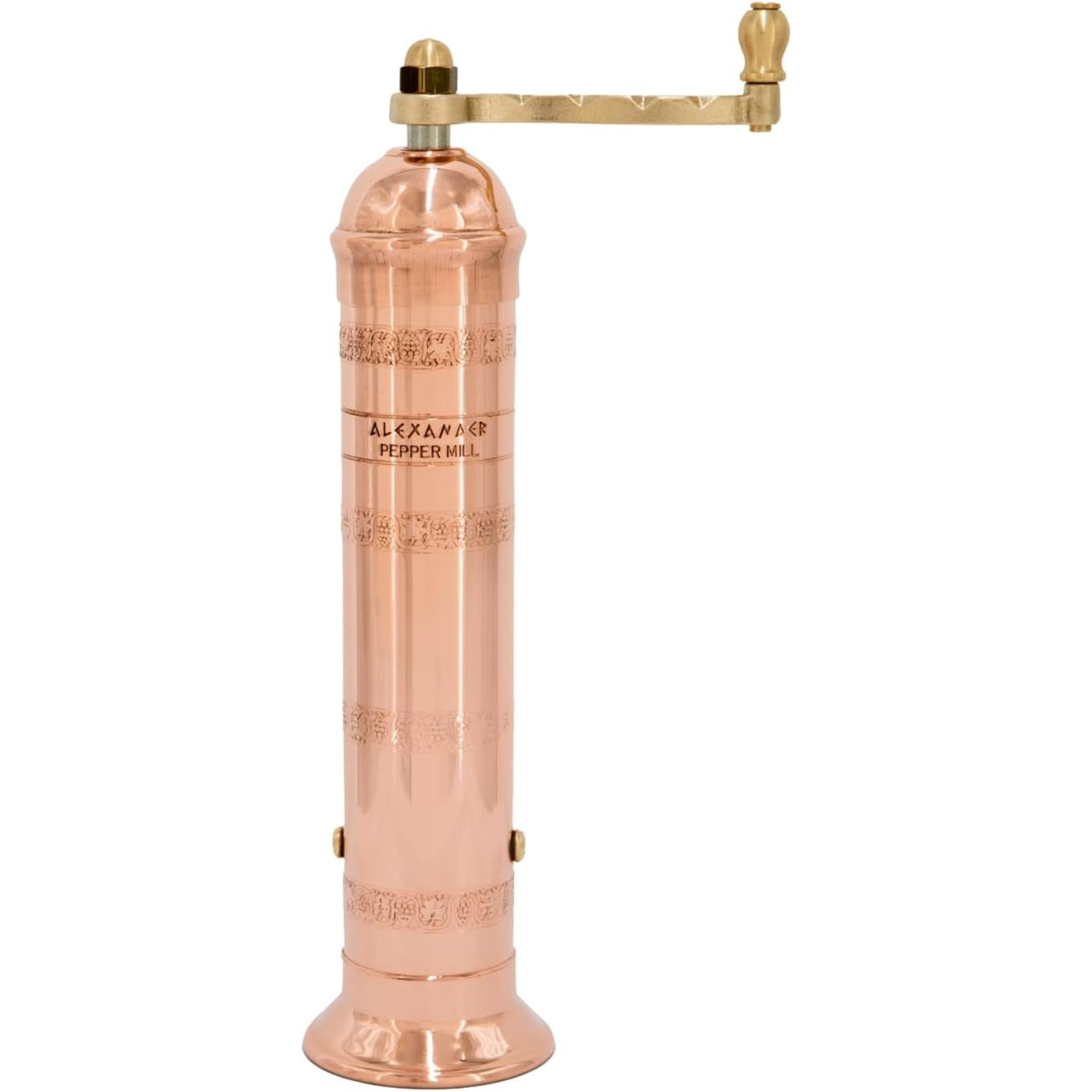 - ARTISANAL EUROPEAN DESIGN: Based on a coffee mill used by Greek soldiers, this mill includes a flanged base for stability and a durable all-metal exterior. A beautifully functional addition to your seasoning & spice tools. Available in copper and brass.