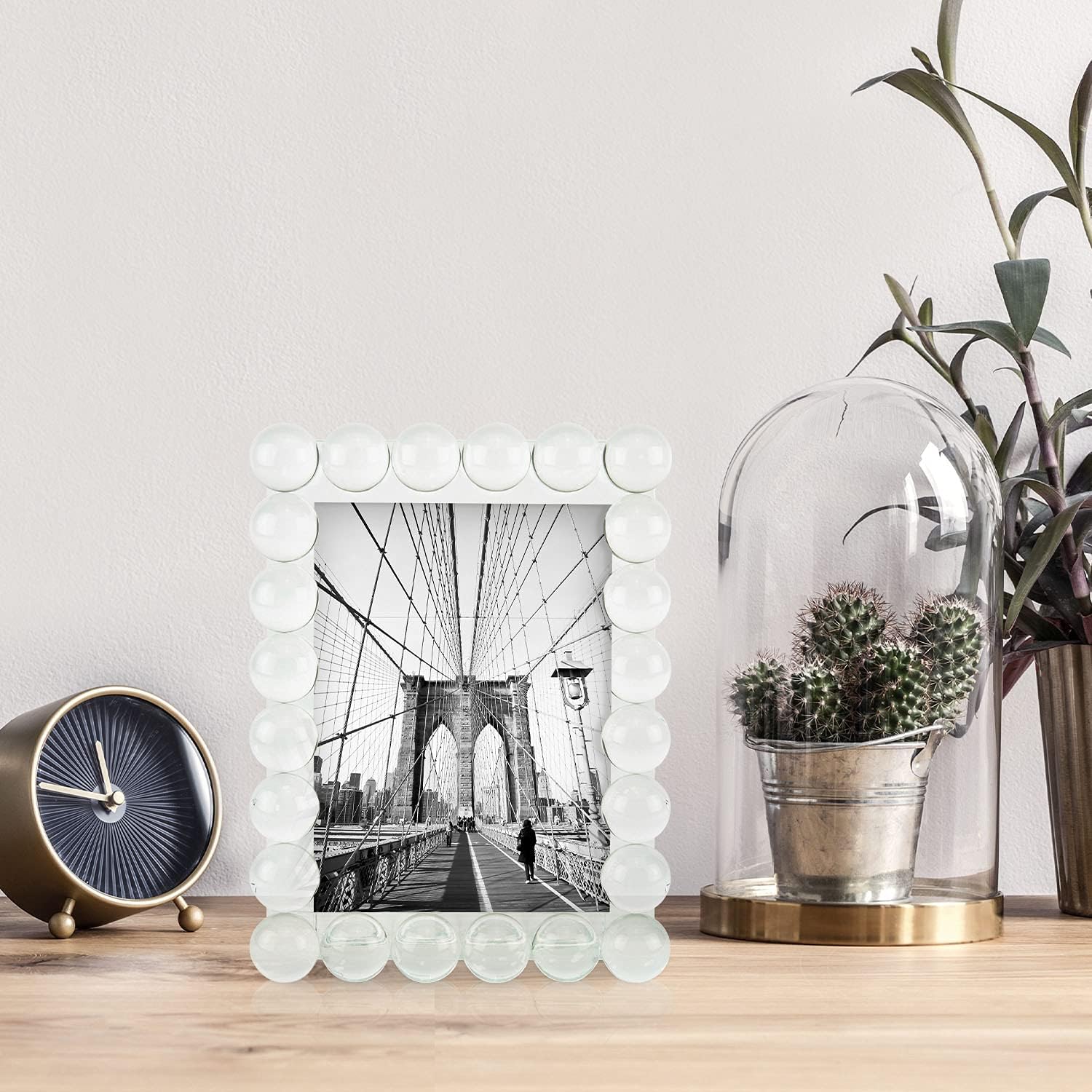 TIZO Design 5x7 Crystal Clear Glass Picture Frame, Boutique Quality Photo Frame (Single Row Bubbles)