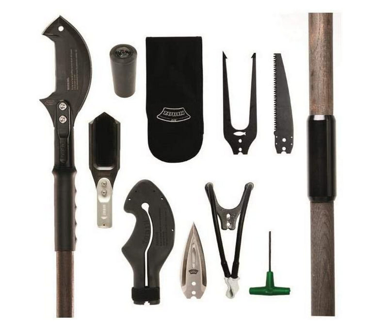 Items Included: Zubin Survival Axe w/ Rubber Protection, Compass, Fishing Spear, Hunting Spear, Saw Blade, Slingshot, Shovel, Two-Piece 52″ Anodized Aluminum Stick, Attachments Pouch and T Handle Allen Tool.